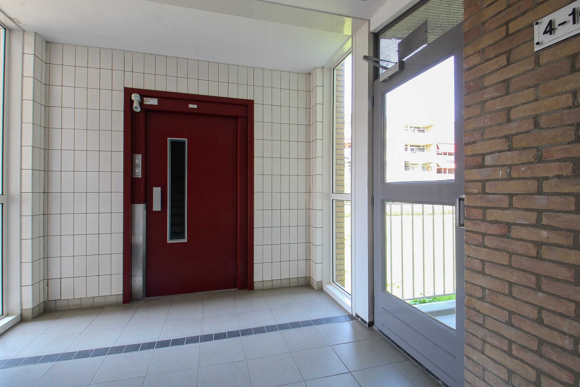 Aan de voorzijde van het complex heeft u een bellentableau en brievenbussen. De ruime entree is voorzien van een lift, opgaande trap, een deur naar de gezamenlijke fietsenstalling en bergingen en een uitgang aan de achterzijde.