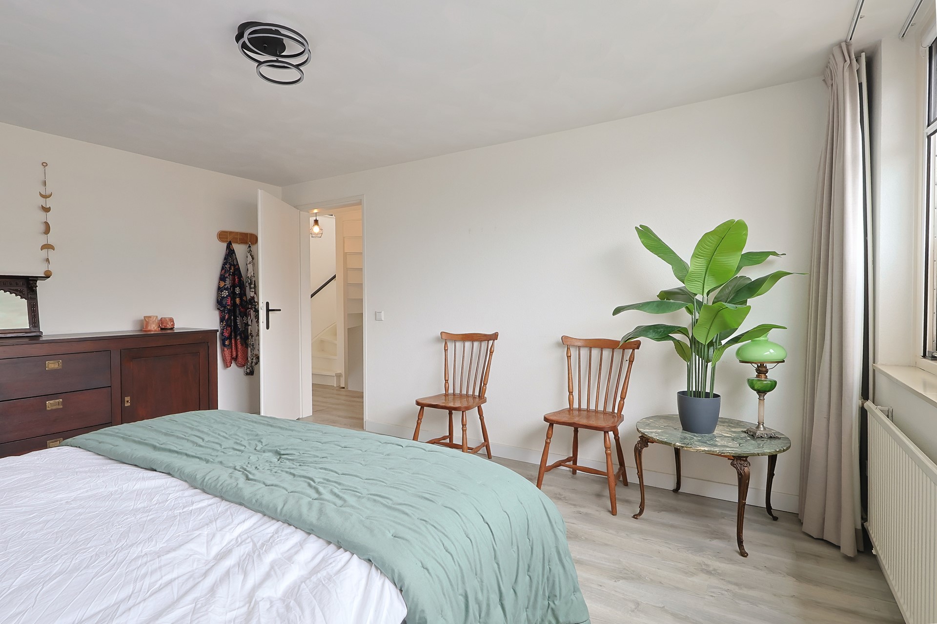 Ruime voorzolder, een aparte wasruimte met de witgoedaansluitingen en de HR-combiketel(2024). Royale vierde slaapkamer. Dankzij de dakkapellen aan zowel de voor- als achterzijde is de verdieping bijzonder ruim en aangenaam licht