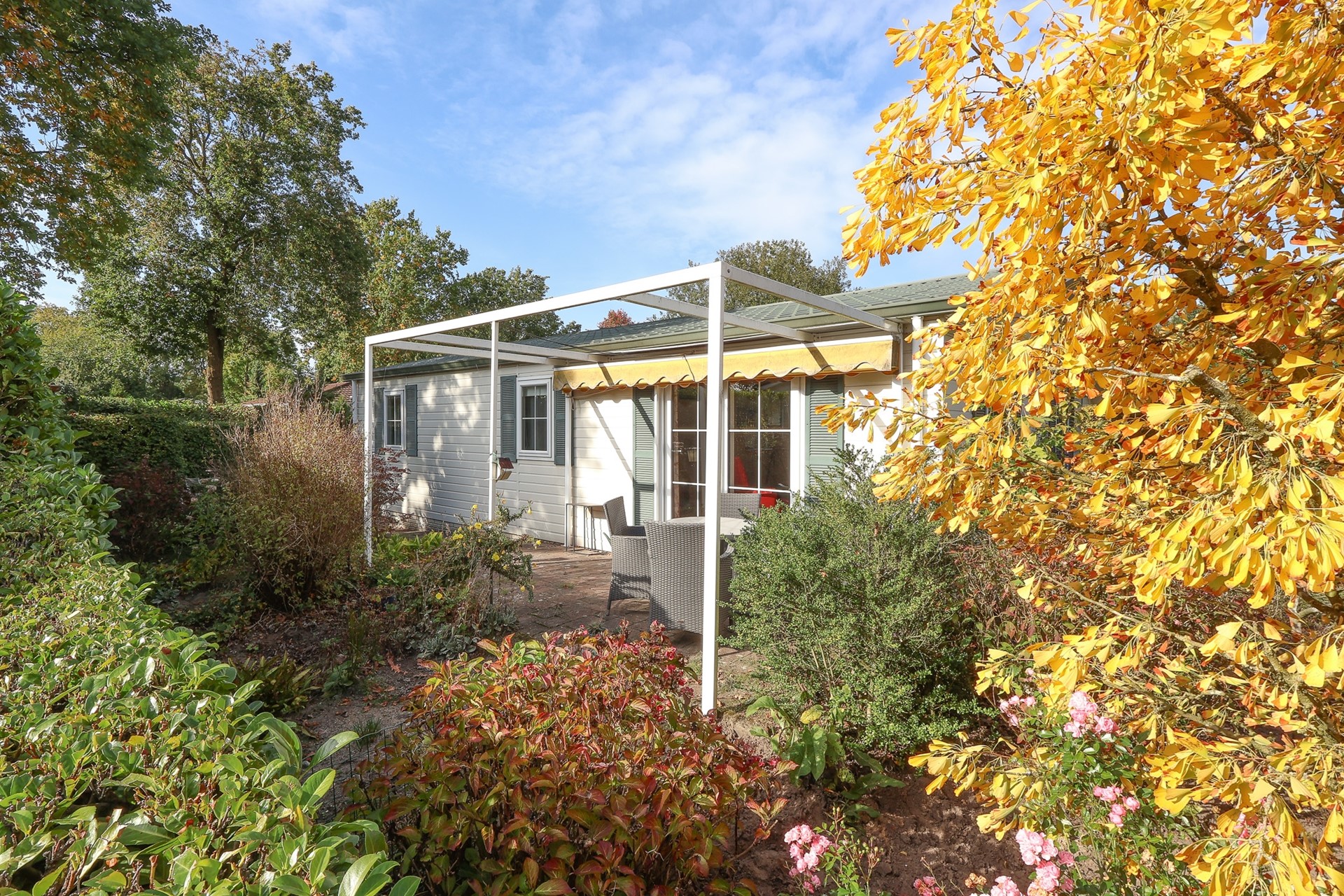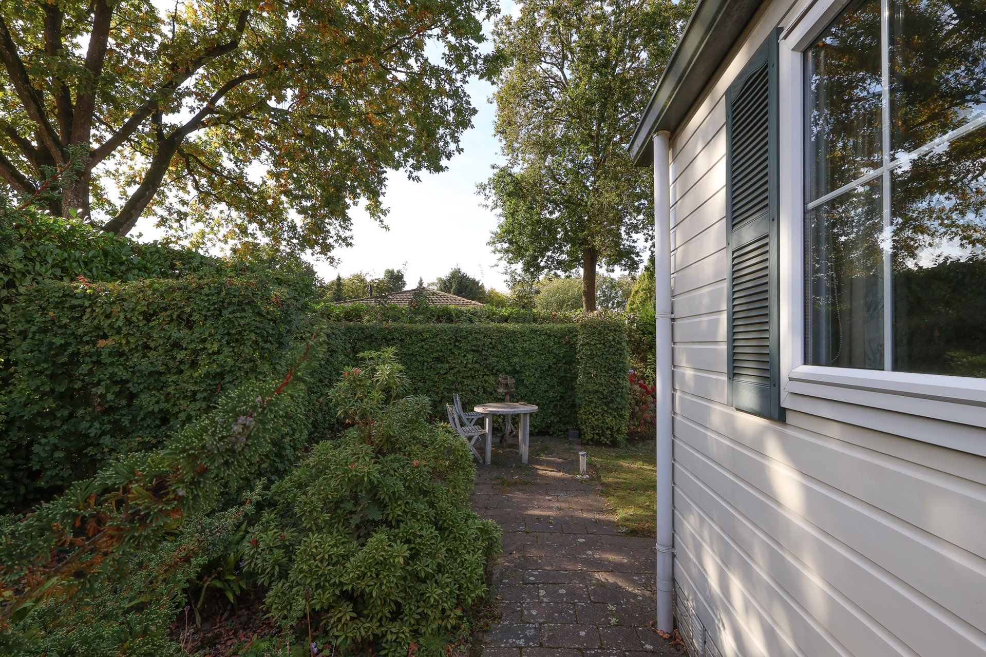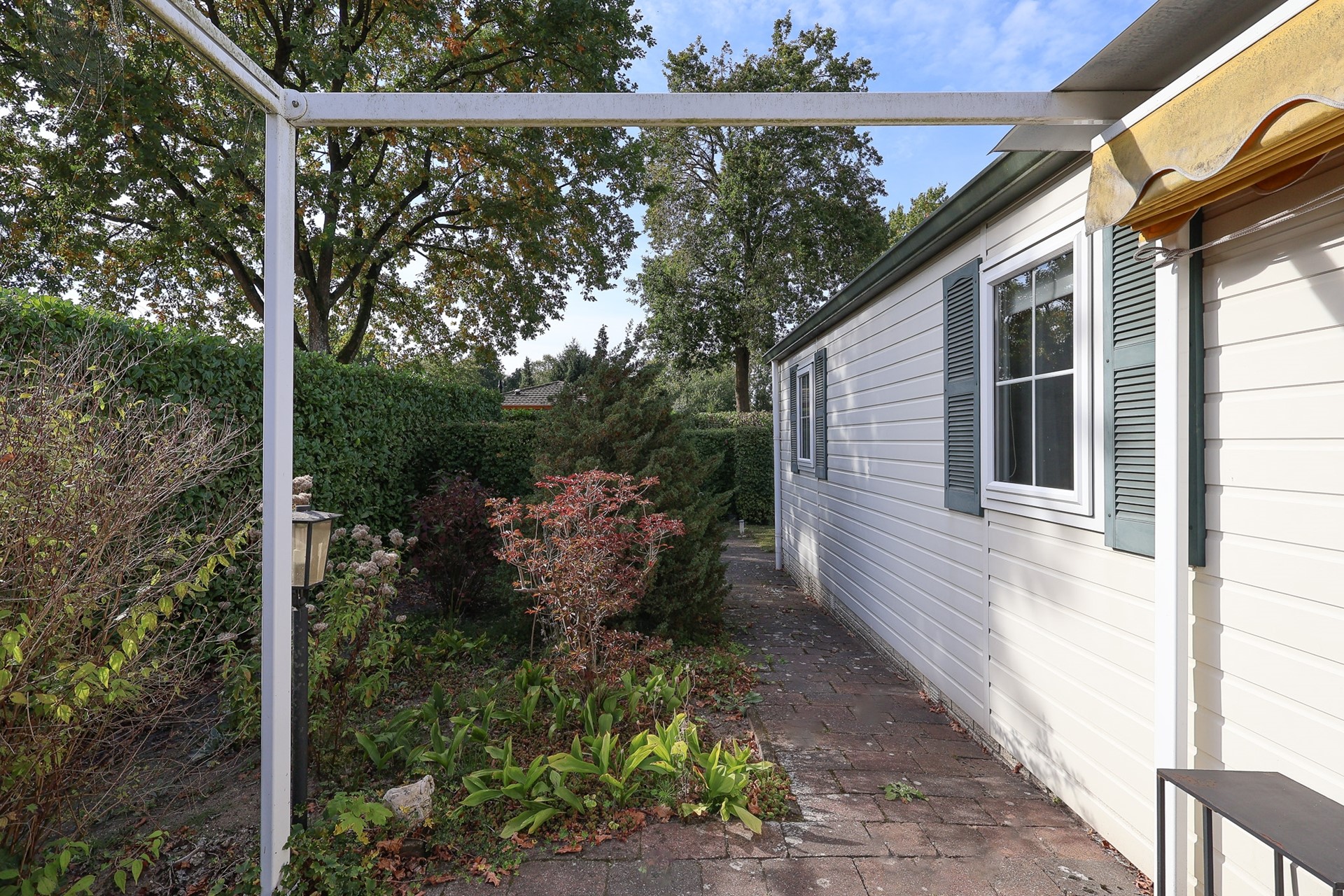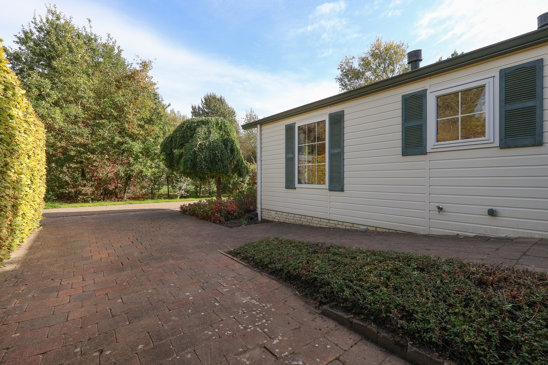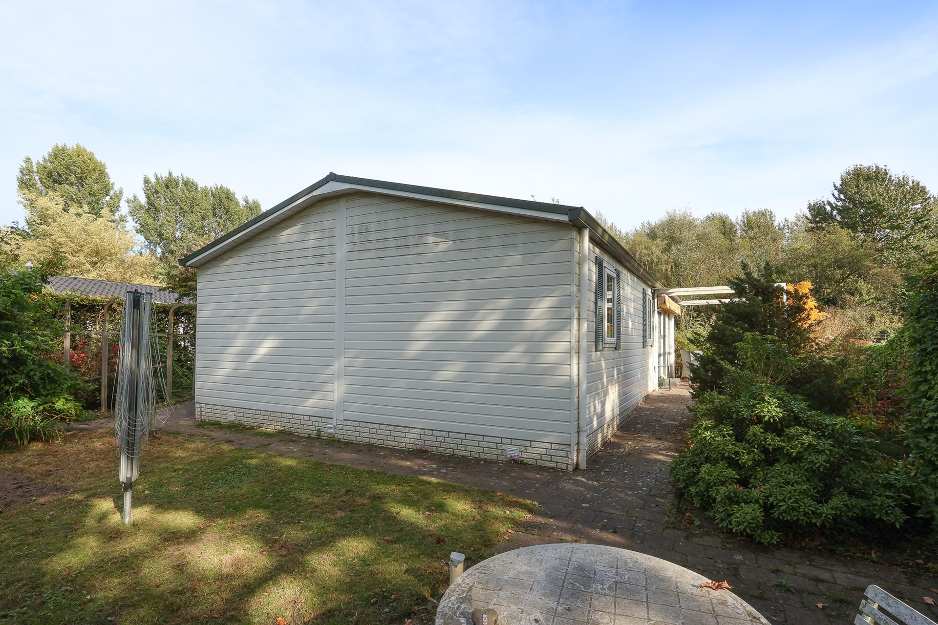 Prima onderhouden vrijstaand chalet gelegen aan de rand van het park met veel groen, een brede oprit, een leuk terras en vrijstaande schuur in de privacy biedende tuin.