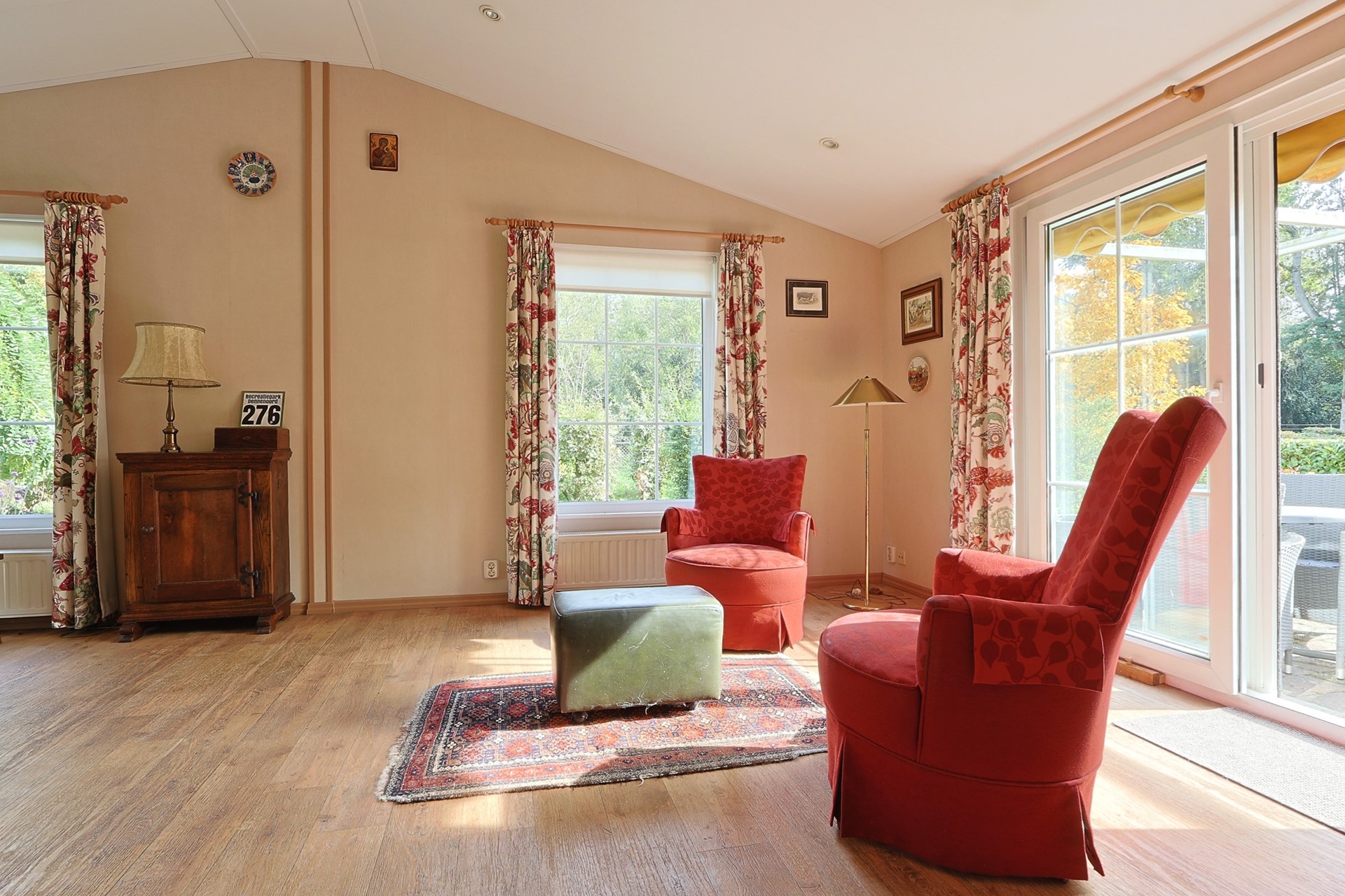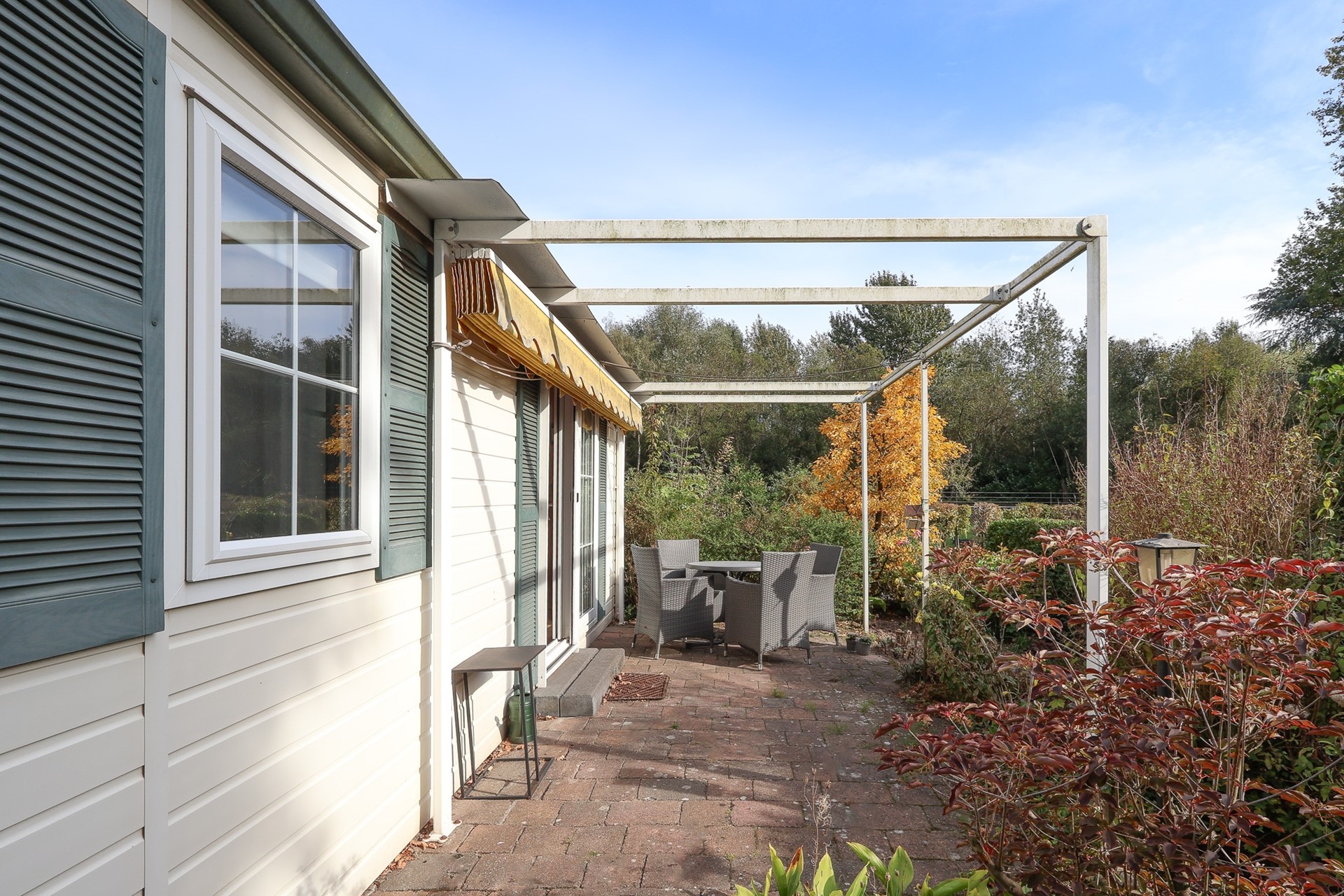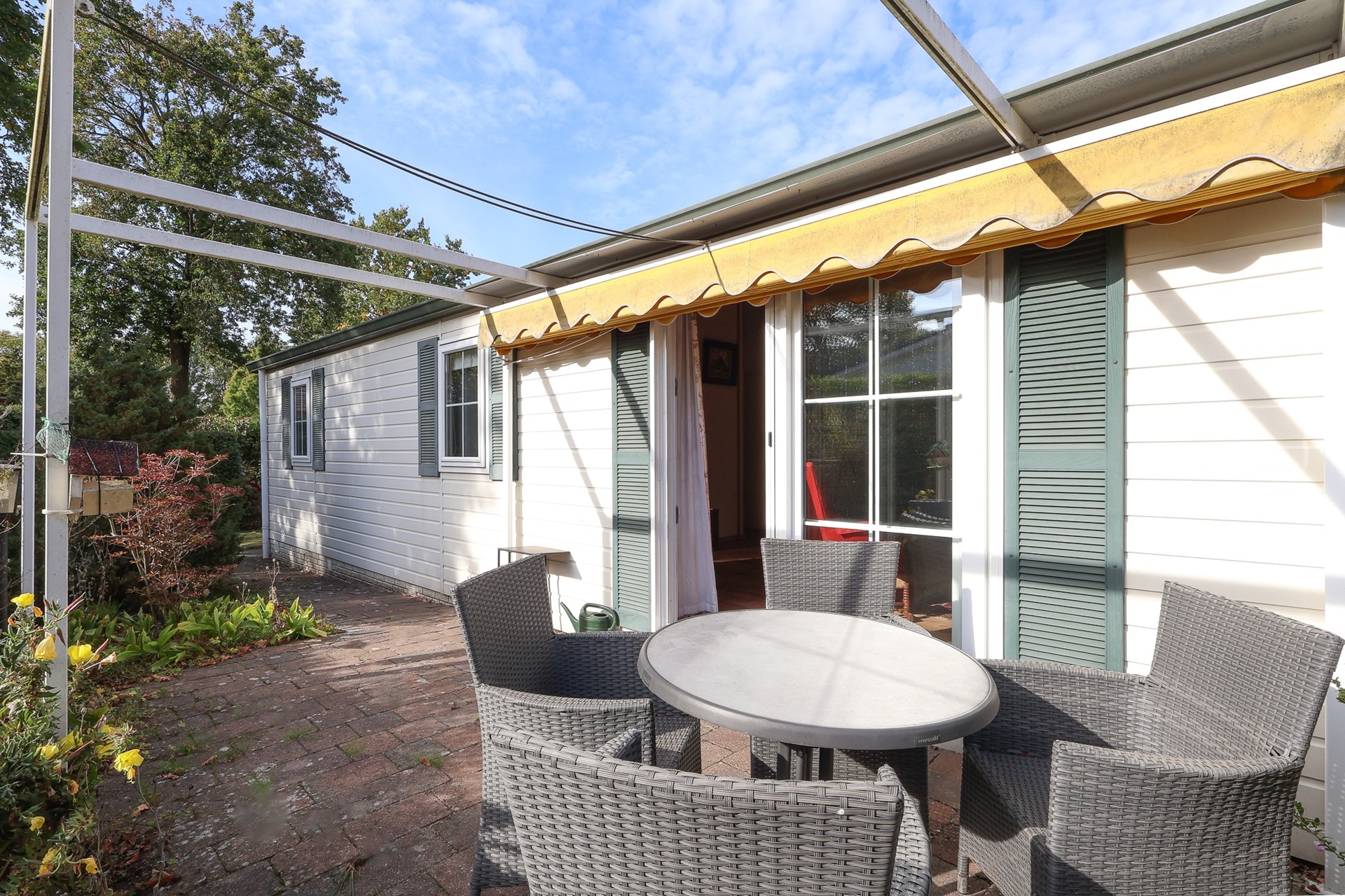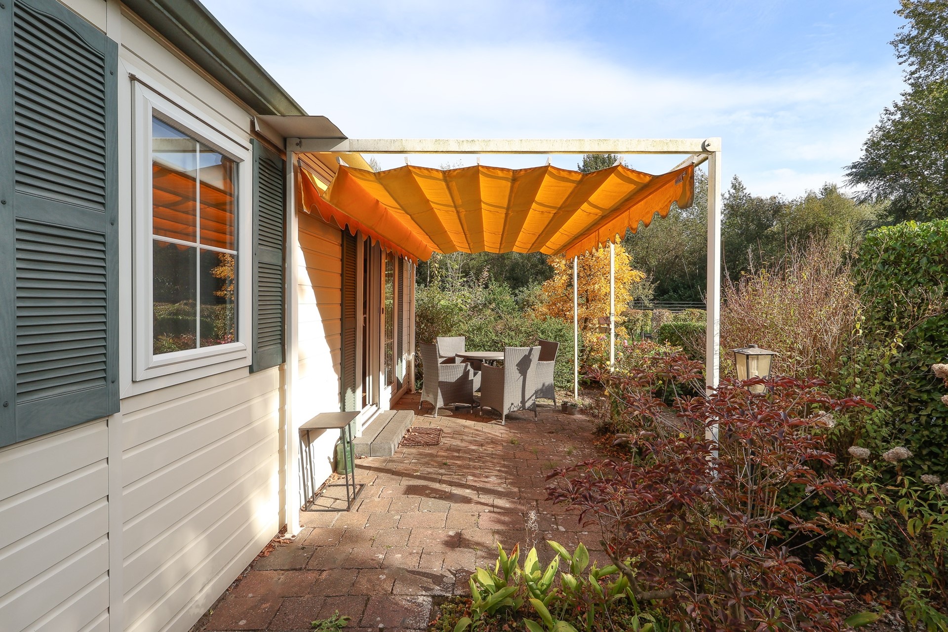 Prima onderhouden vrijstaand chalet gelegen aan de rand van het park met veel groen, een brede oprit, een leuk terras en vrijstaande schuur in de privacy biedende tuin.