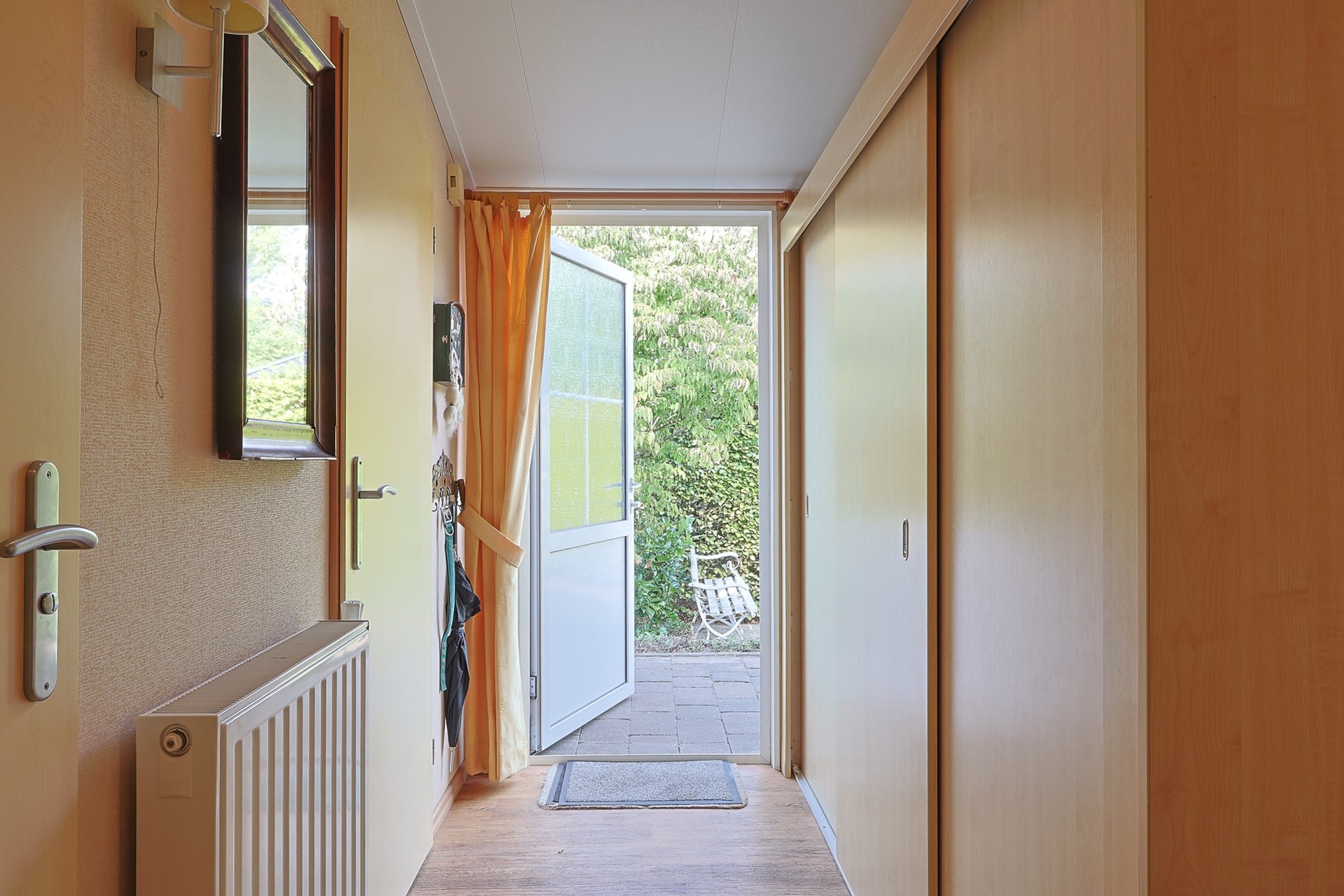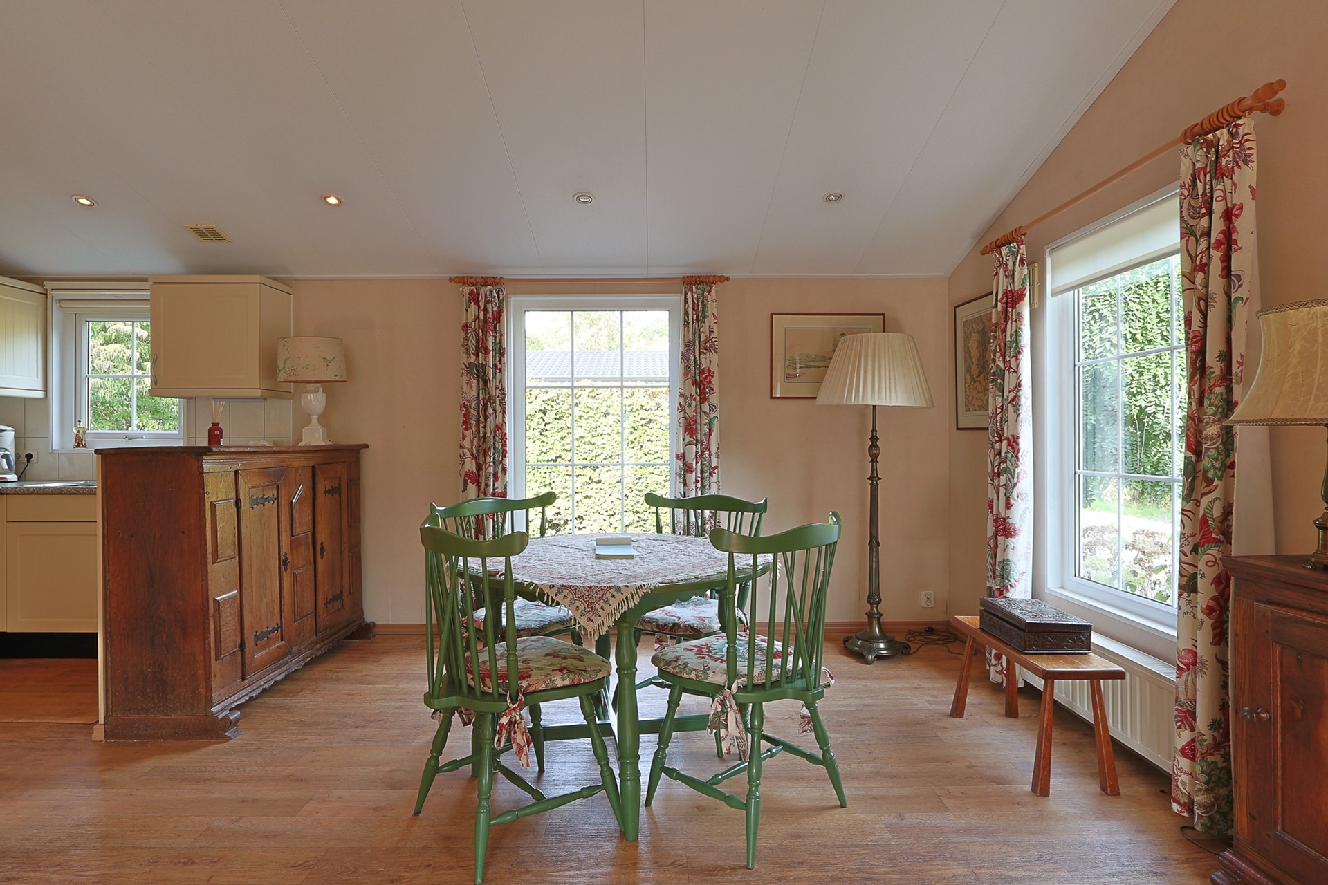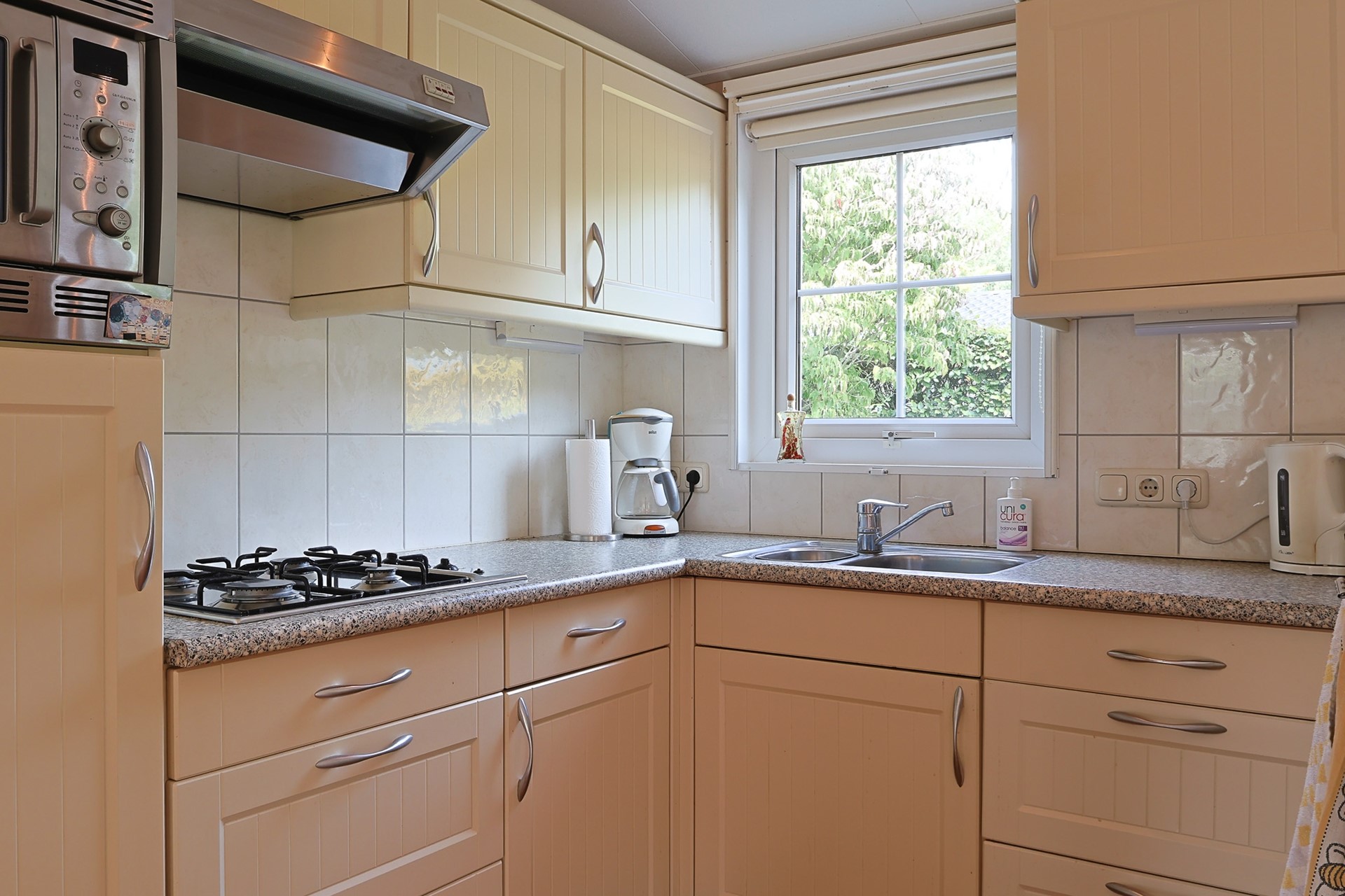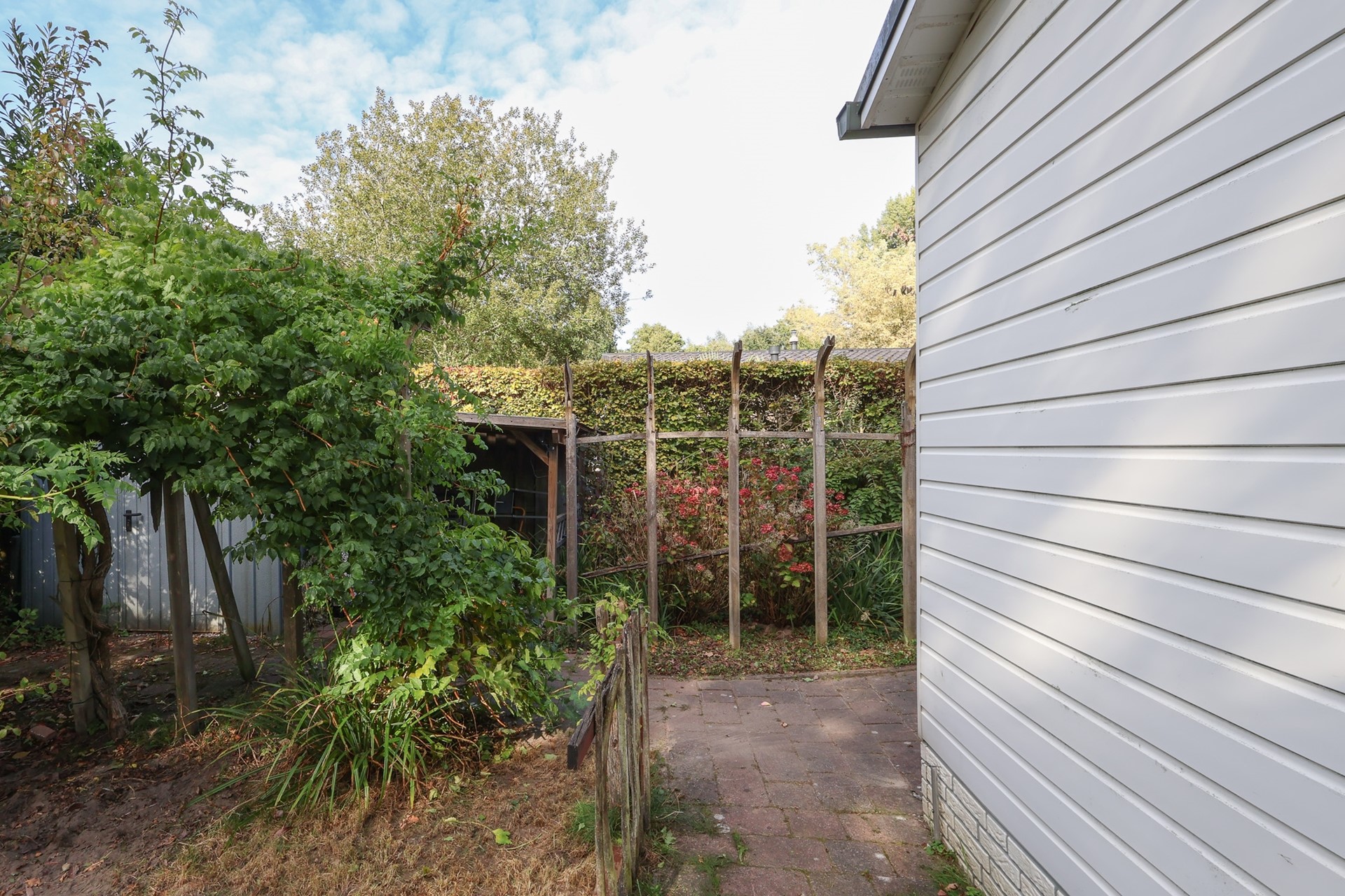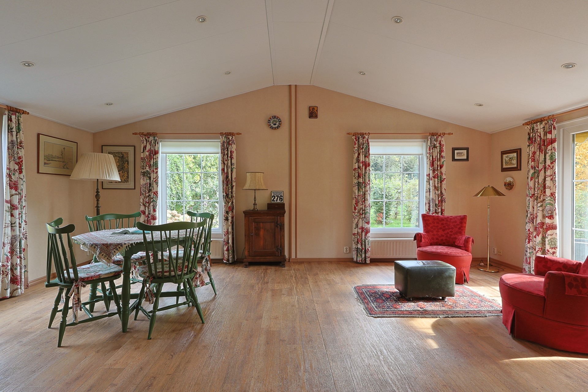 Prima onderhouden vrijstaand chalet gelegen aan de rand van het park met veel groen, een brede oprit, een leuk terras en vrijstaande schuur in de privacy biedende tuin.