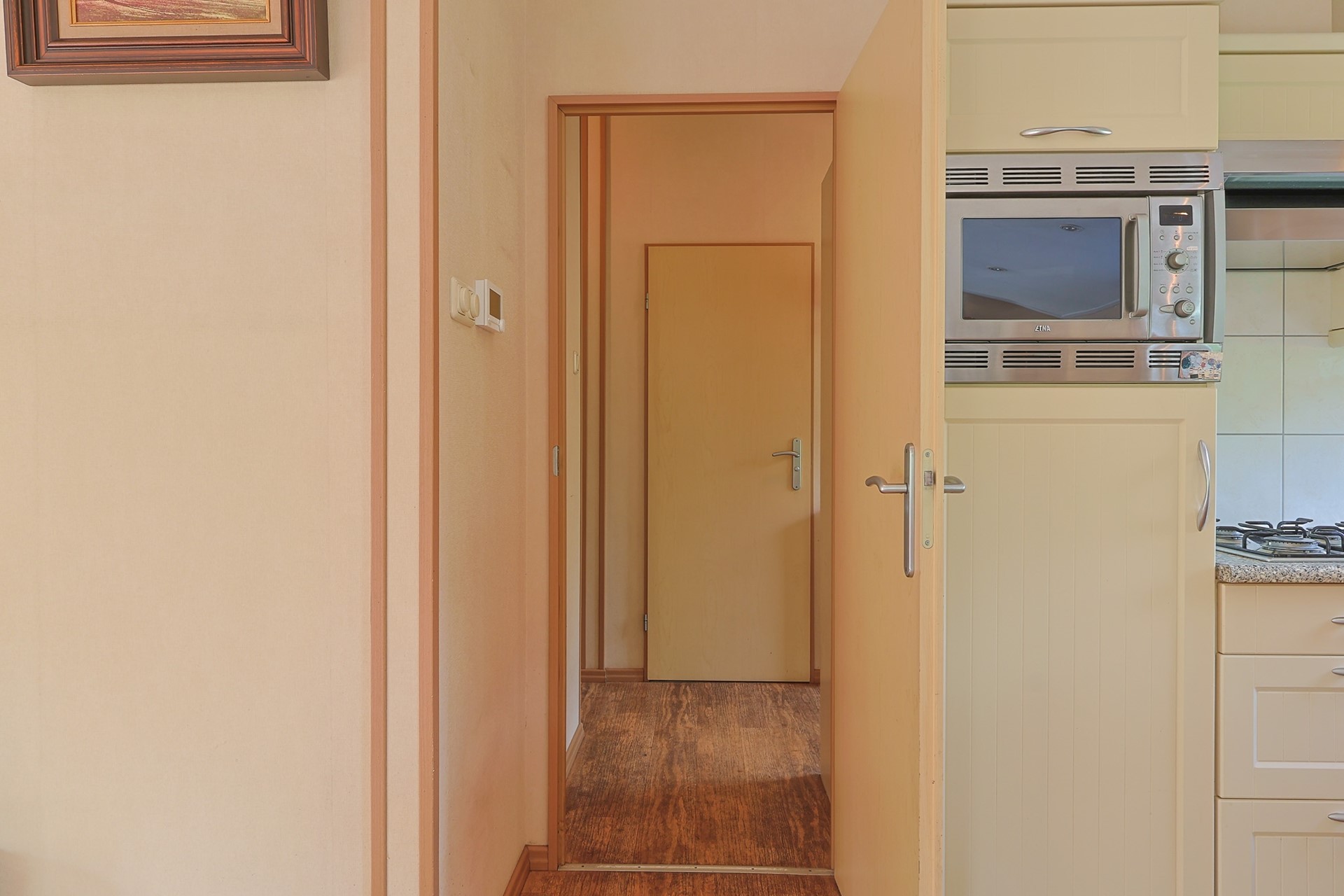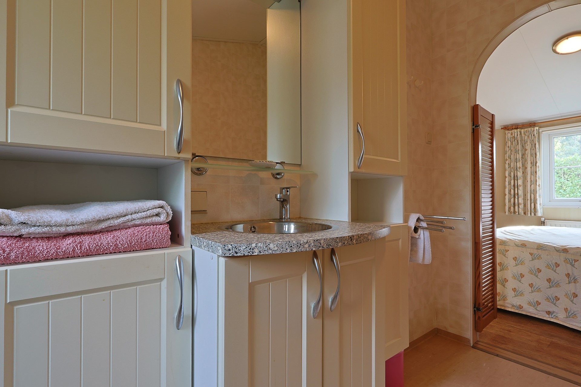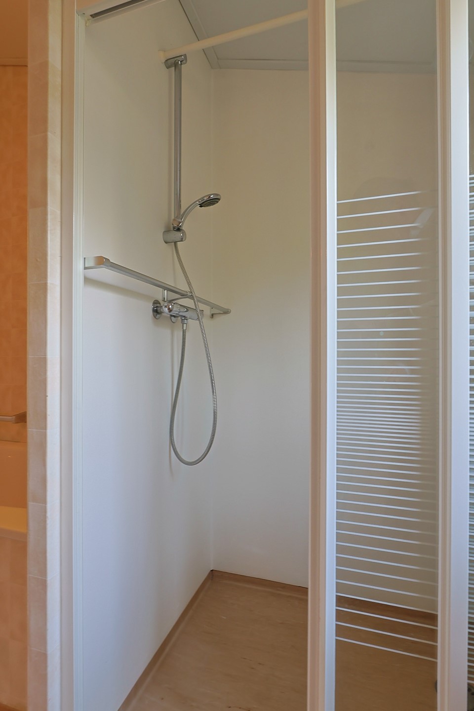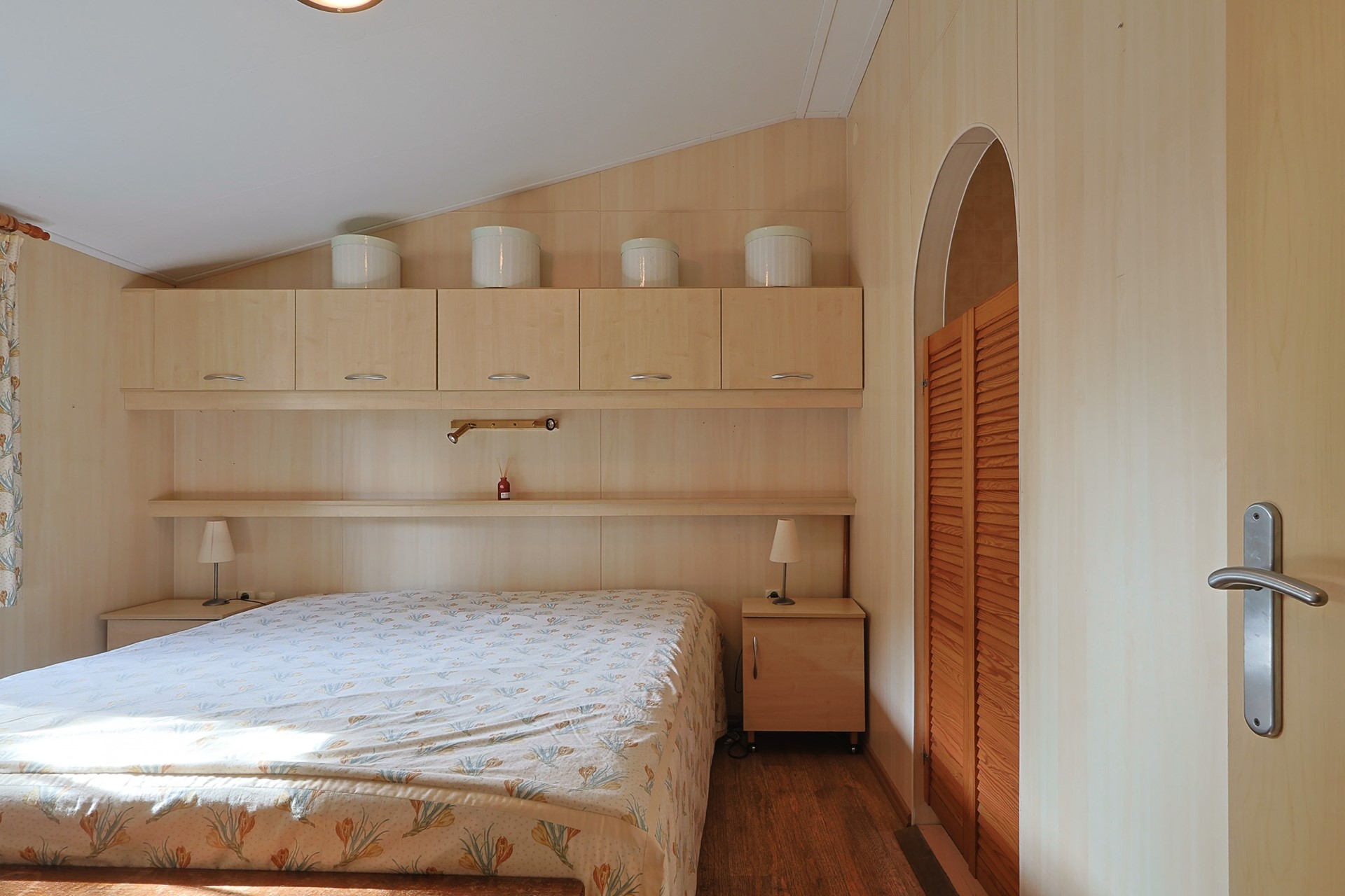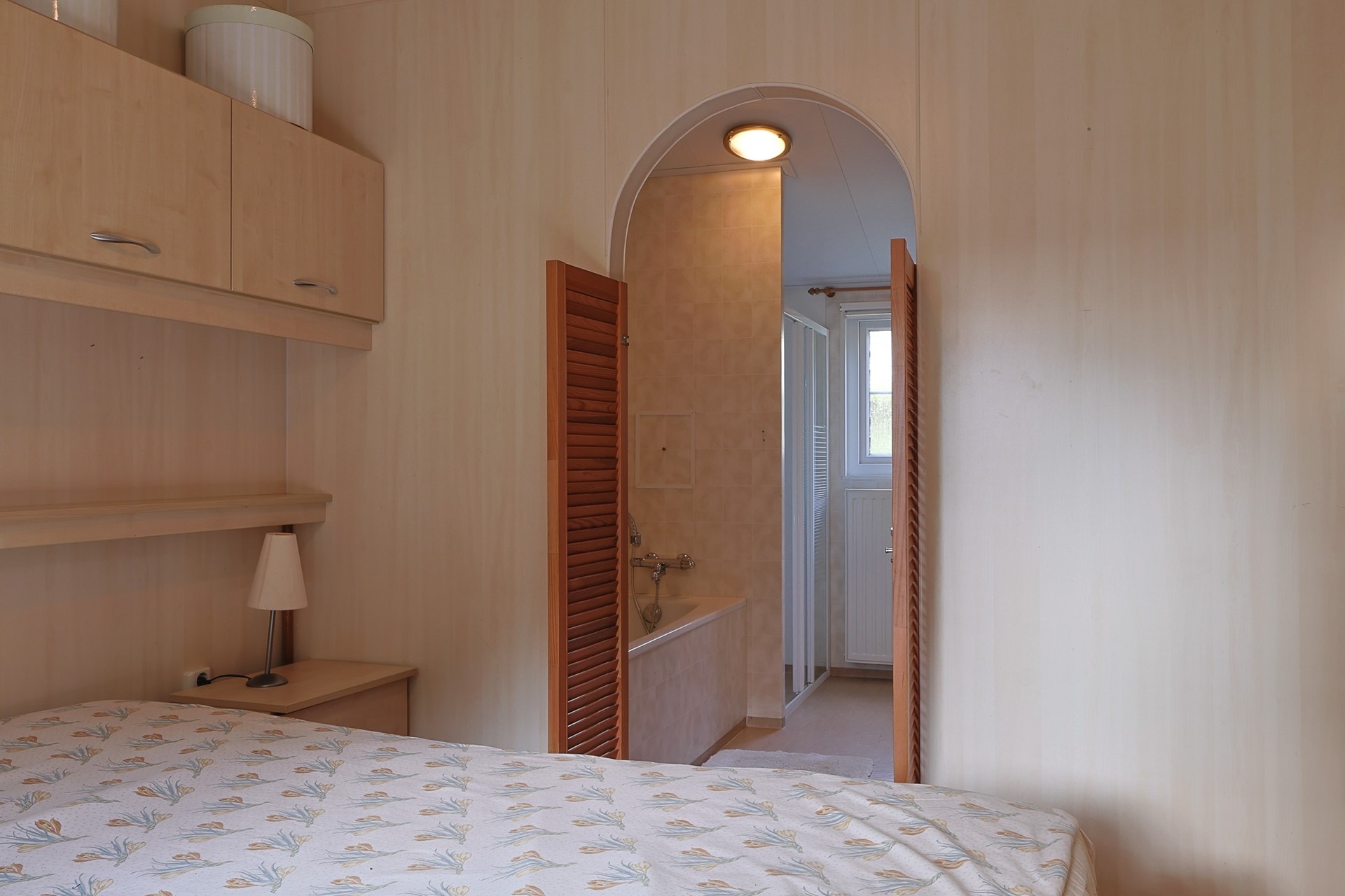 Het chalet heeft een comfortabele indeling met veel extra kastruimte, een royale en-suite badkamer met douche én bad, een prima wasruimte/berging, separaat toilet en extra op maat gemaakte kastruimte.