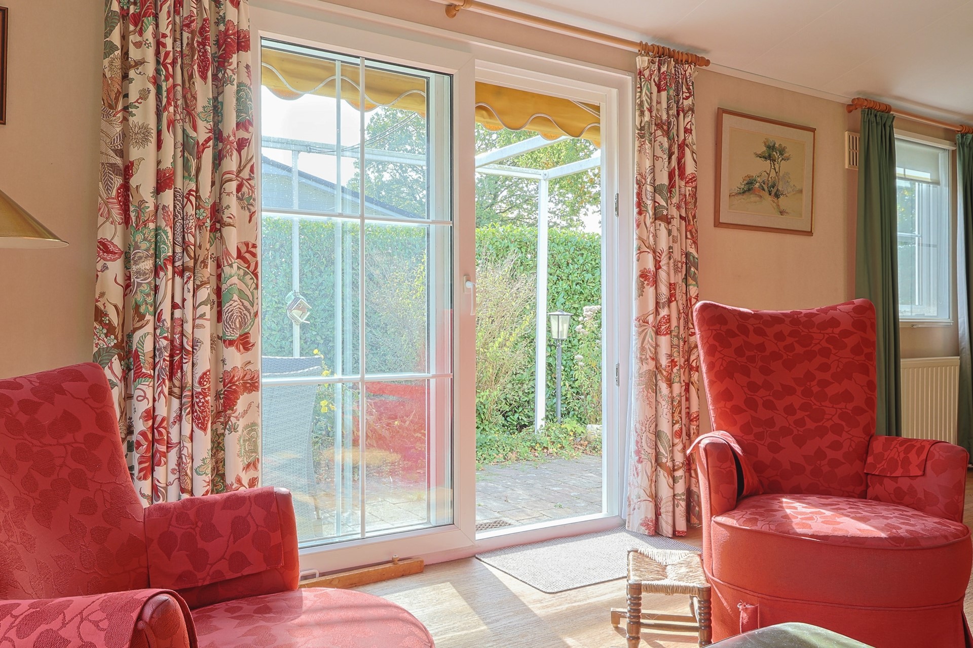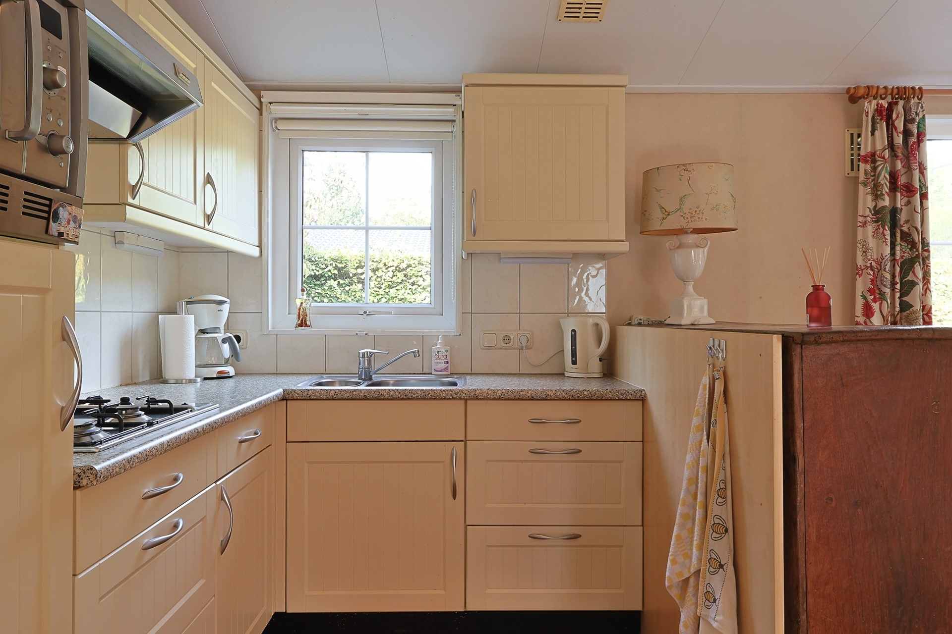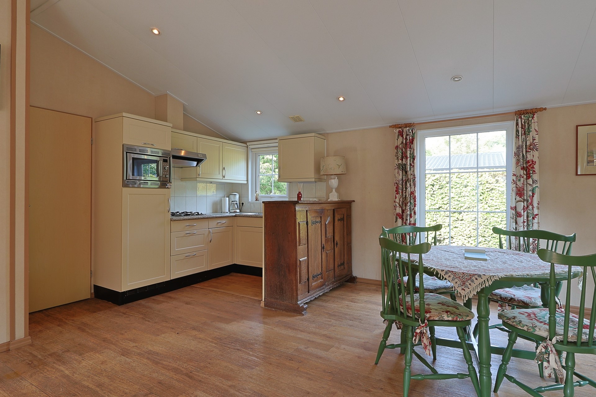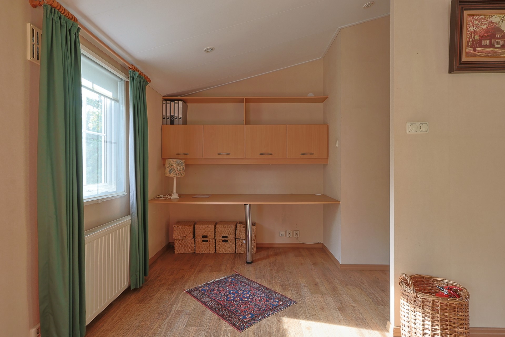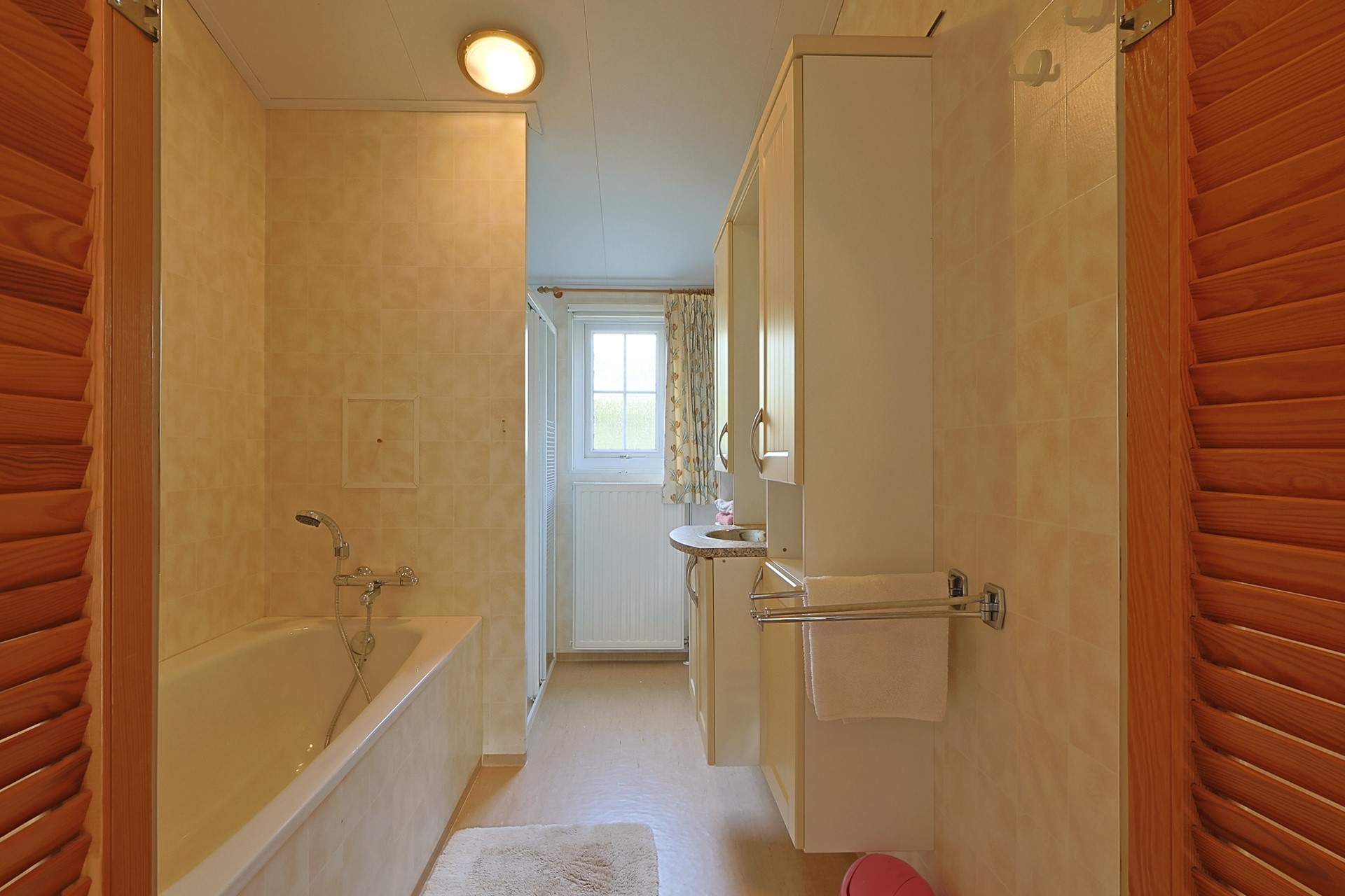 Het chalet heeft een comfortabele indeling met veel extra kastruimte, een royale en-suite badkamer met douche én bad, een prima wasruimte/berging, separaat toilet en extra op maat gemaakte kastruimte.