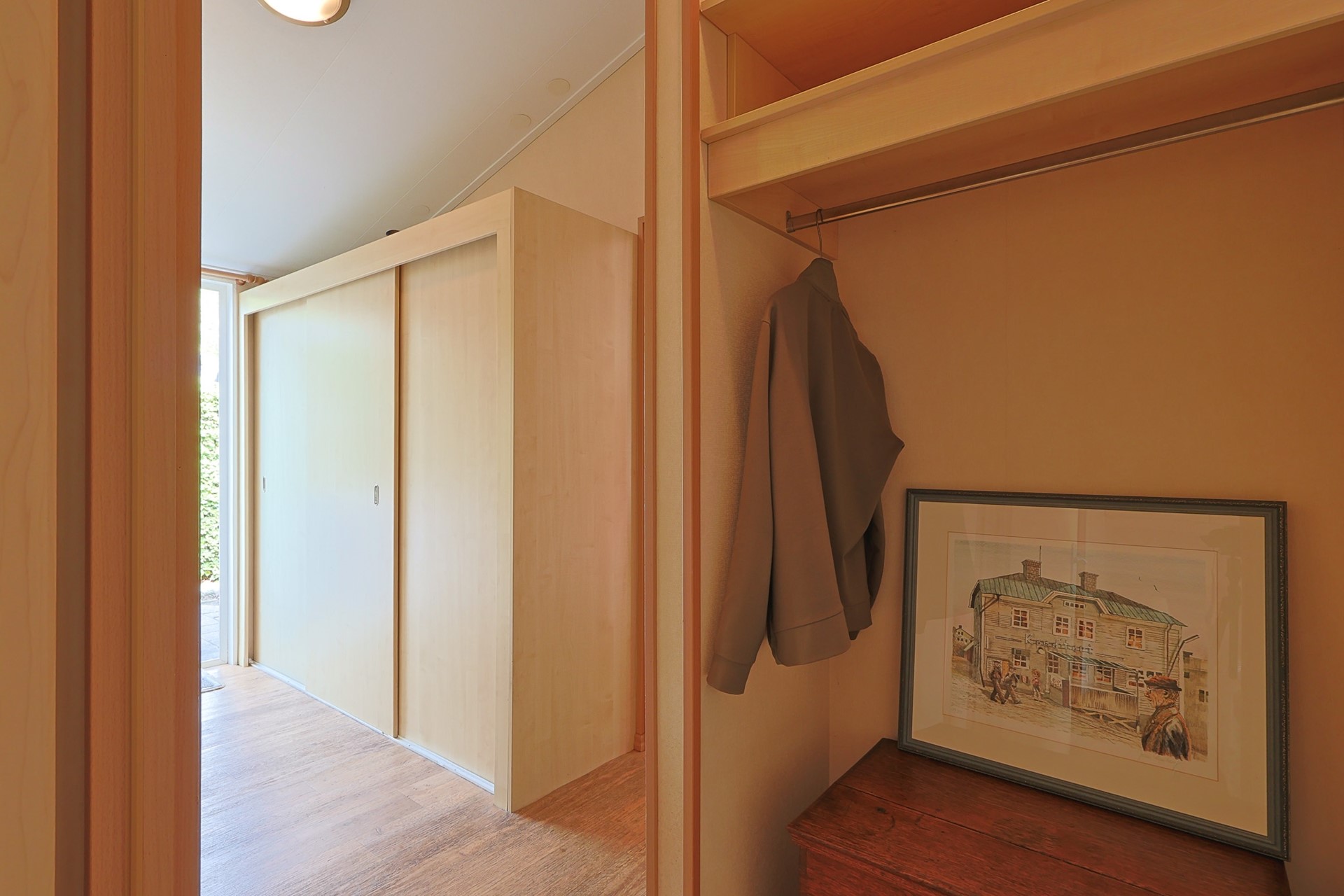Entree/hal met vaste kasten, de wasruimte/berging, separaat toilet en garderobehoek.