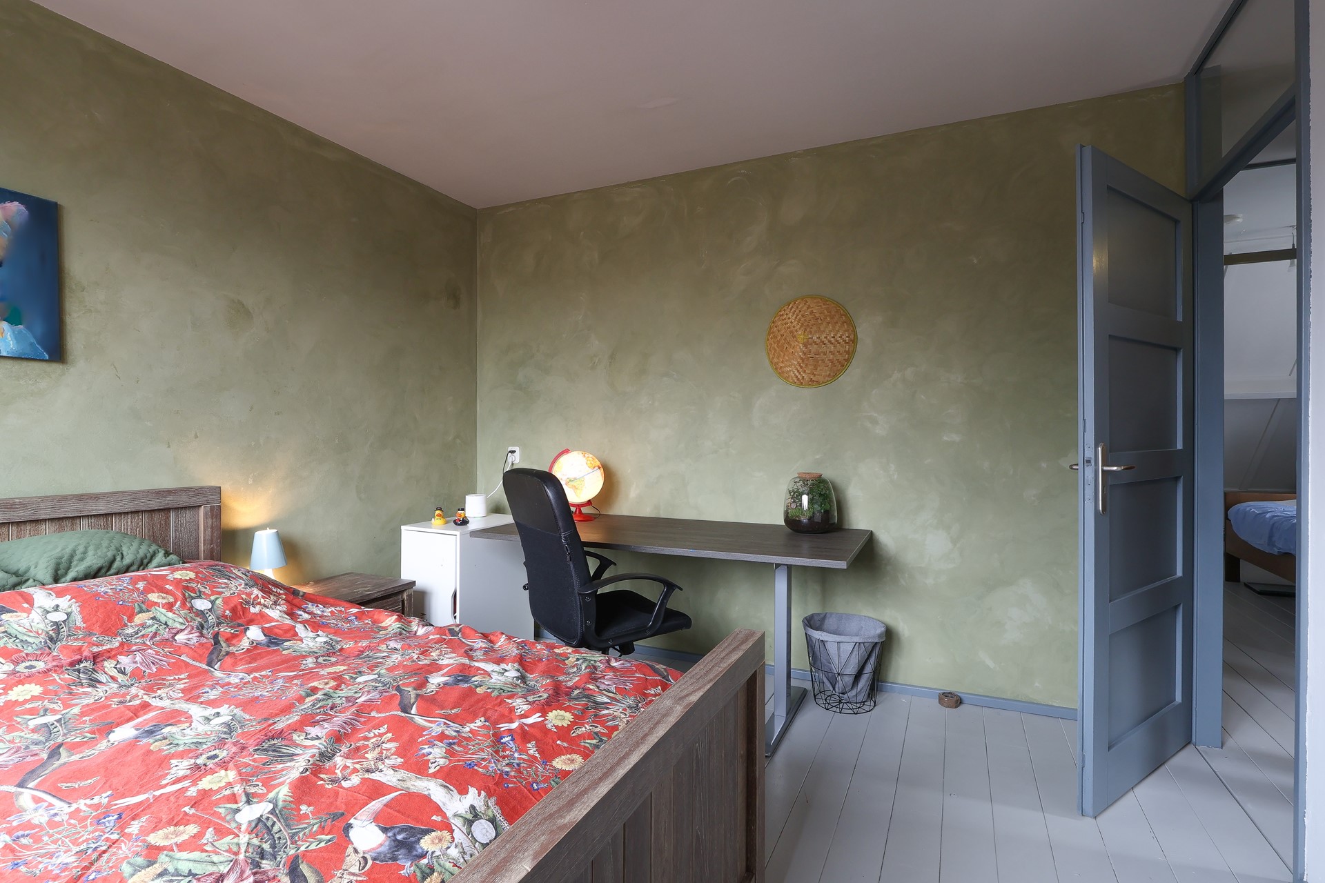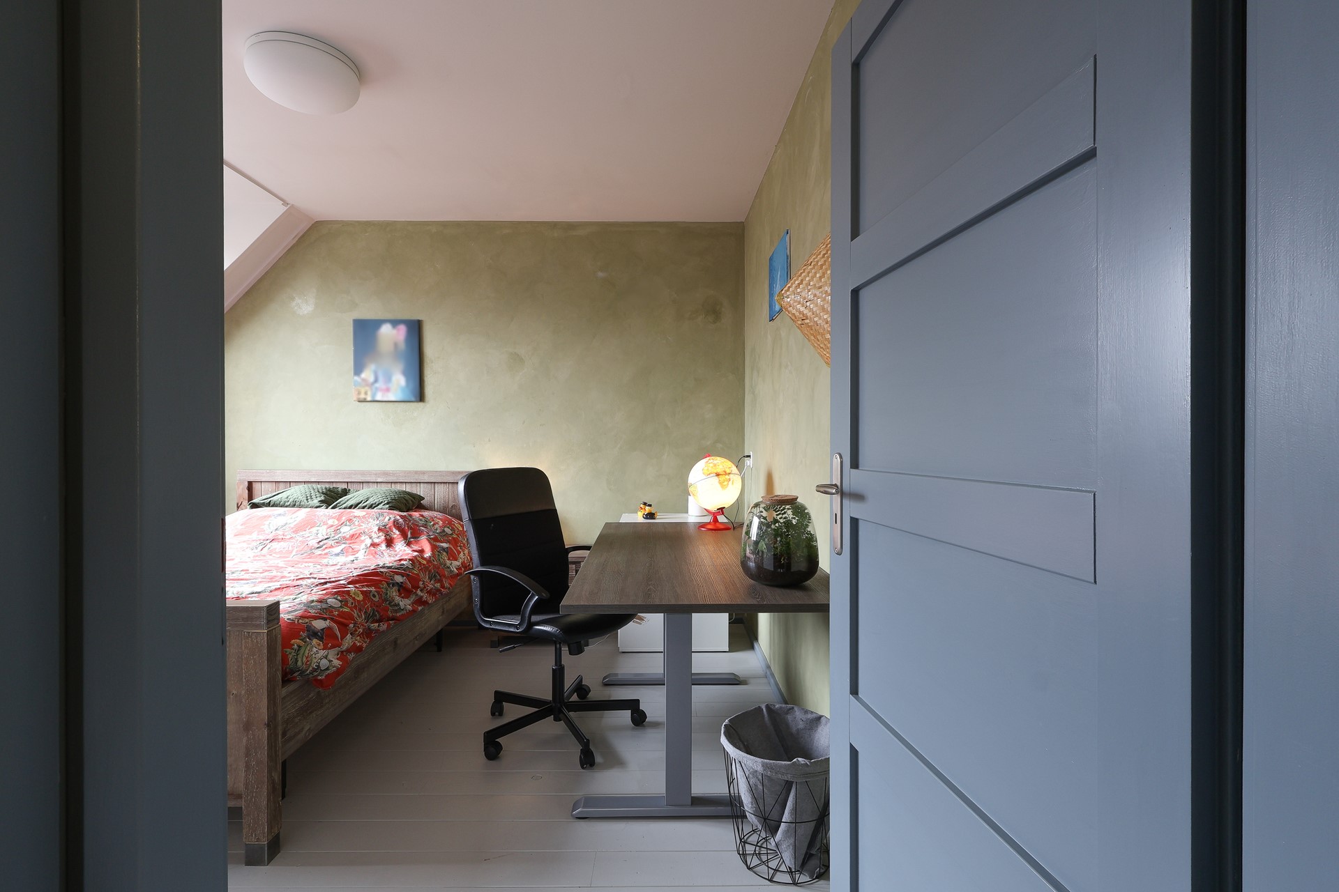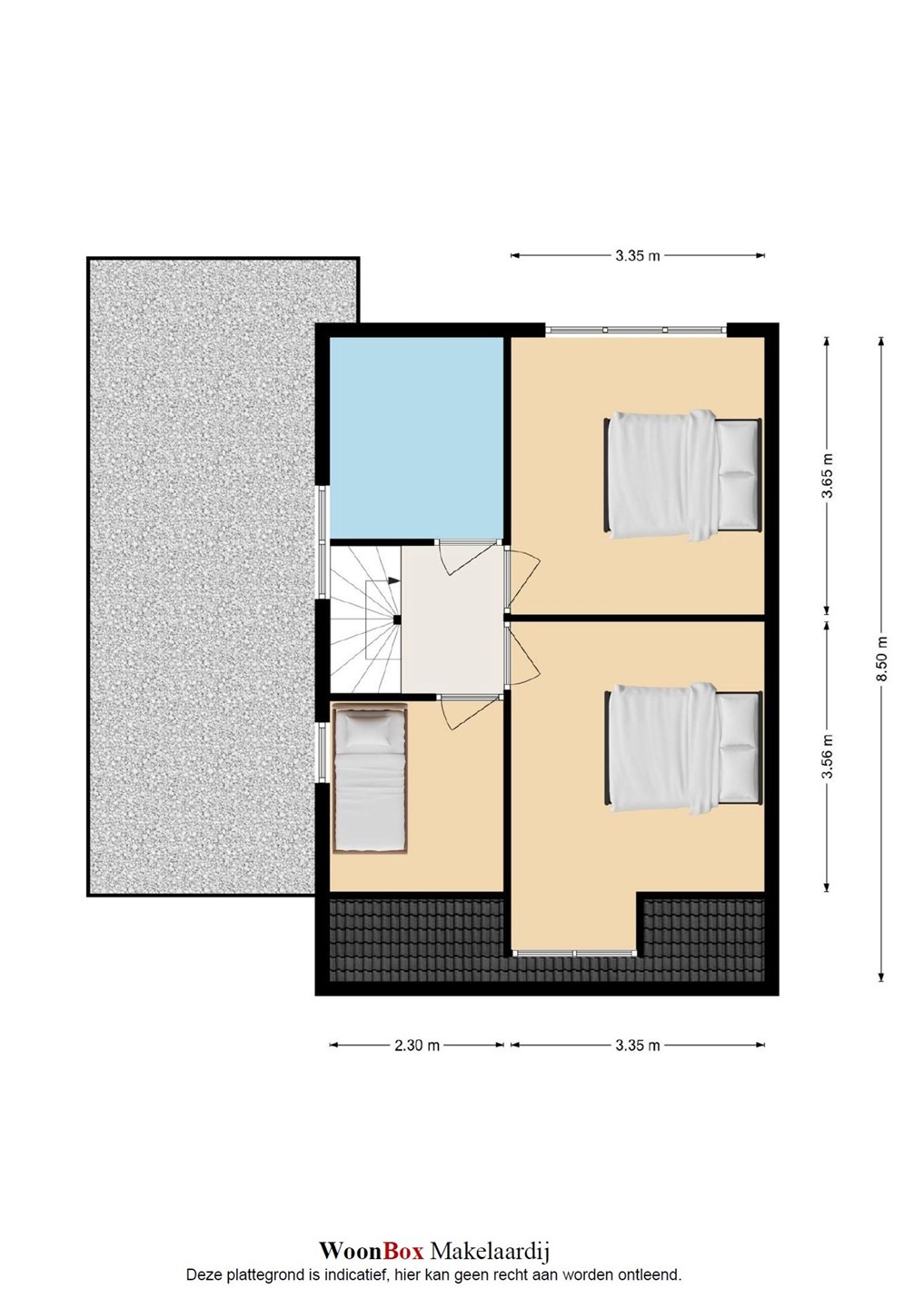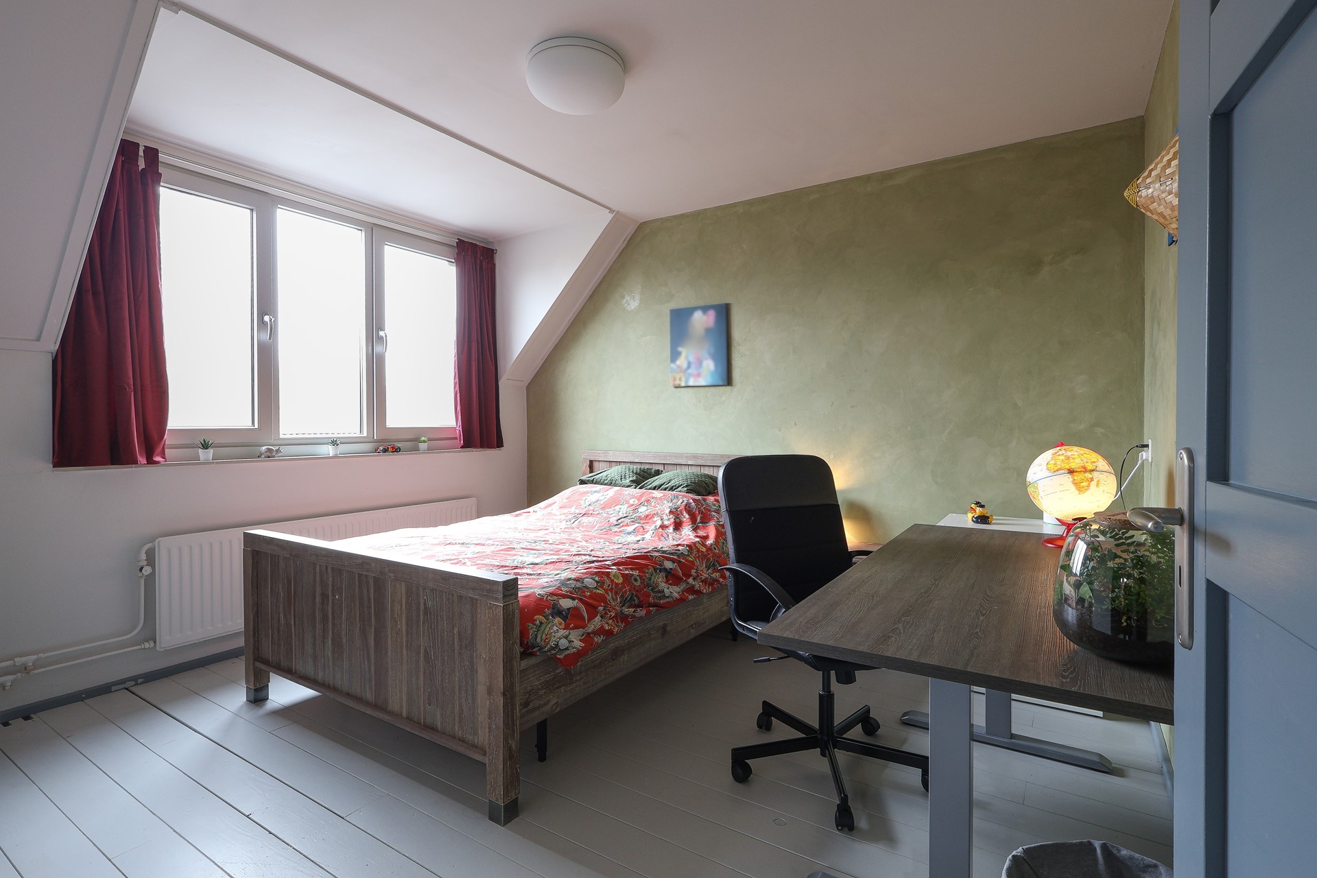 Ruime multifunctionele zolderverdieping, geschikt als extra slaapkamer of werkruimte, met bergruimte onder de schuine kap. Daarnaast bevinden zich hier de afzuigunit voor de centrale afzuiging en de HR-combiketel. De verdieping is voorzien van twee Velux dakramen met horren, plissé gordijnen en verduistering.