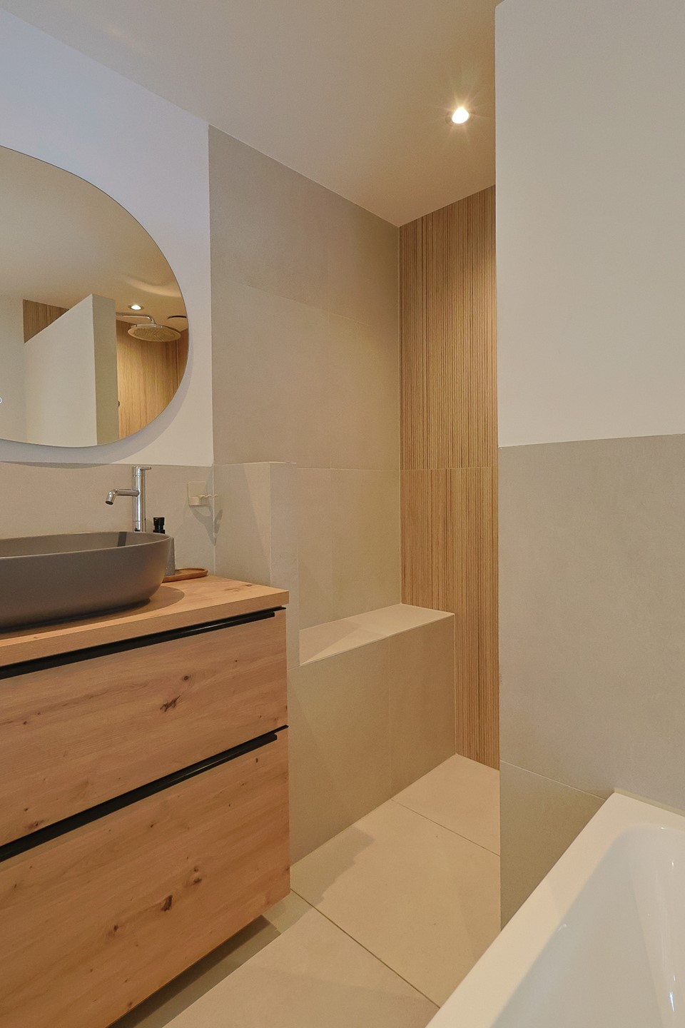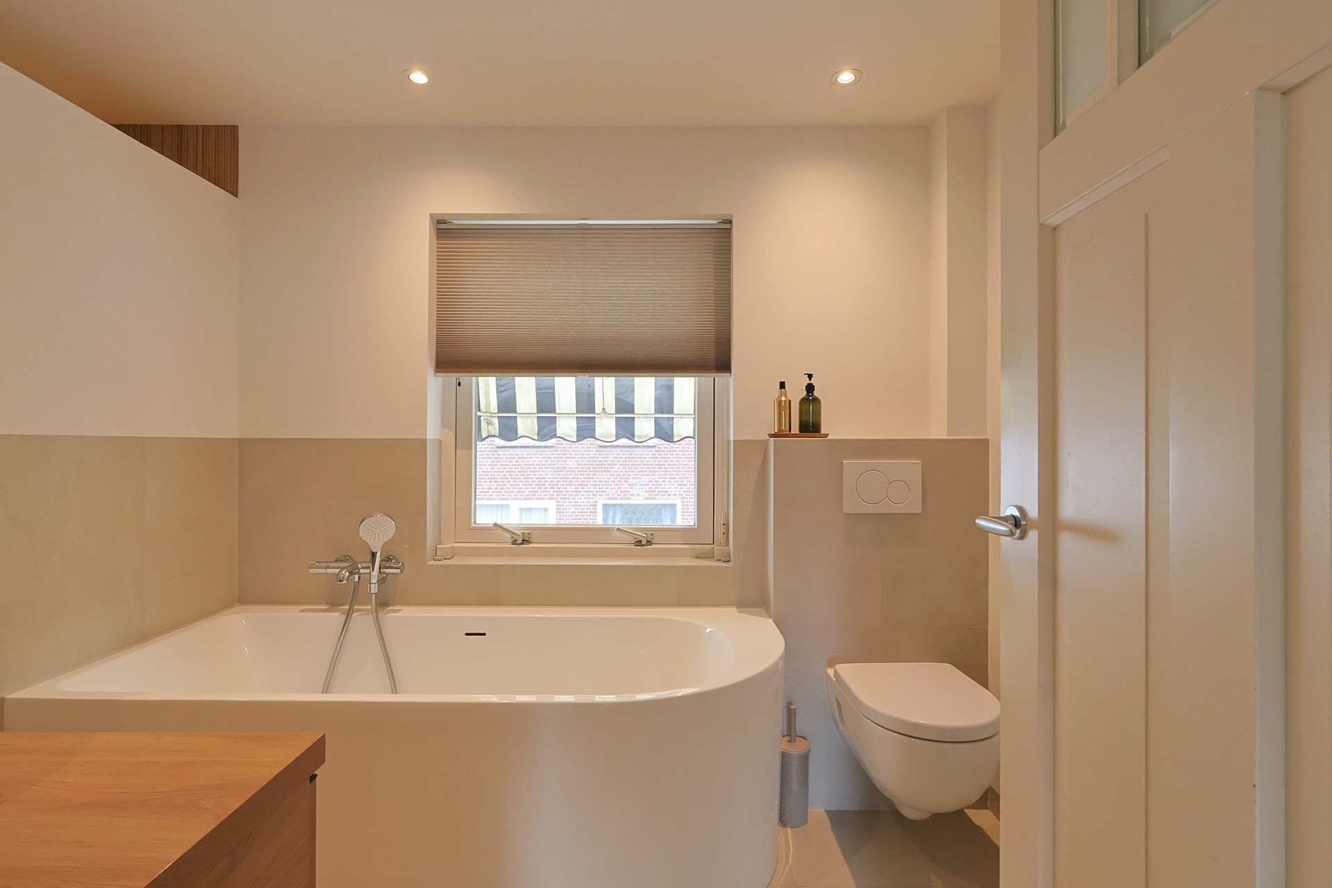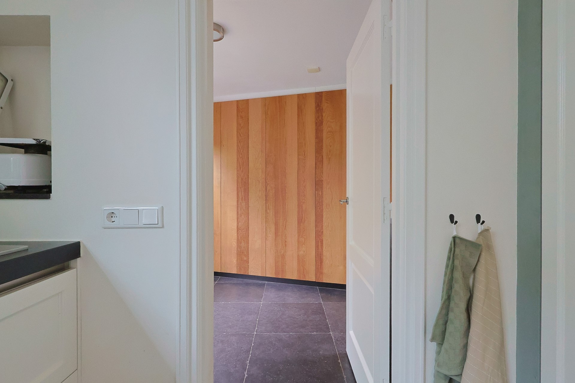 Op de eerste verdieping bevinden zich twee ruime slaapkamers, een kastenkamer (eventueel derde slaapkamer) en een moderne badkamer met hangcloset, ligbad, grote inloopdouche, wat bergruimte en wastafel met meubel. Vanuit de ouderkamer heeft u toegang tot een zonnig dakterras met houten vlonders. Onder andere de paneeldeuren en houten vloeren op geven de verdieping een warme, stijlvolle uitstraling.