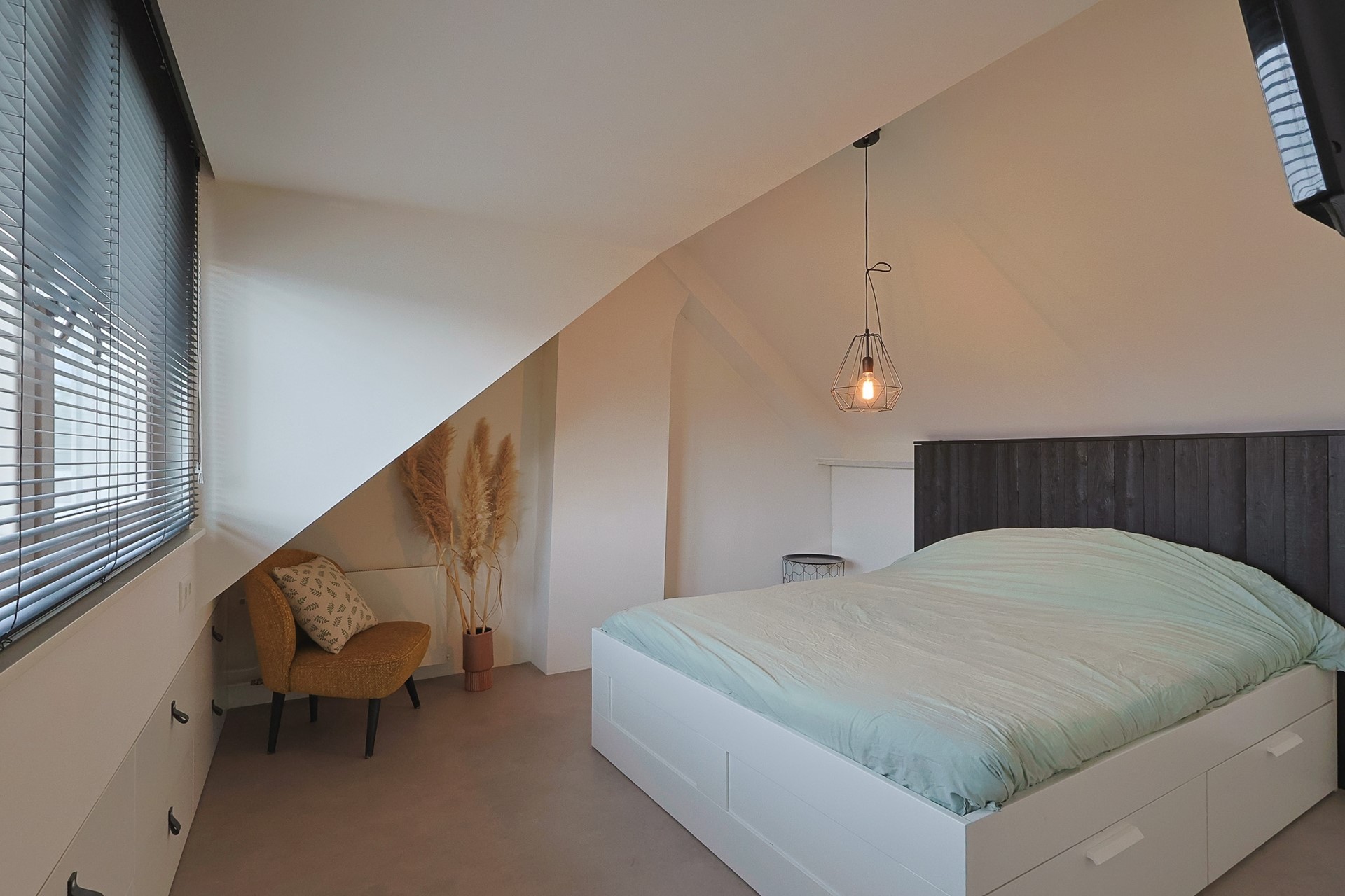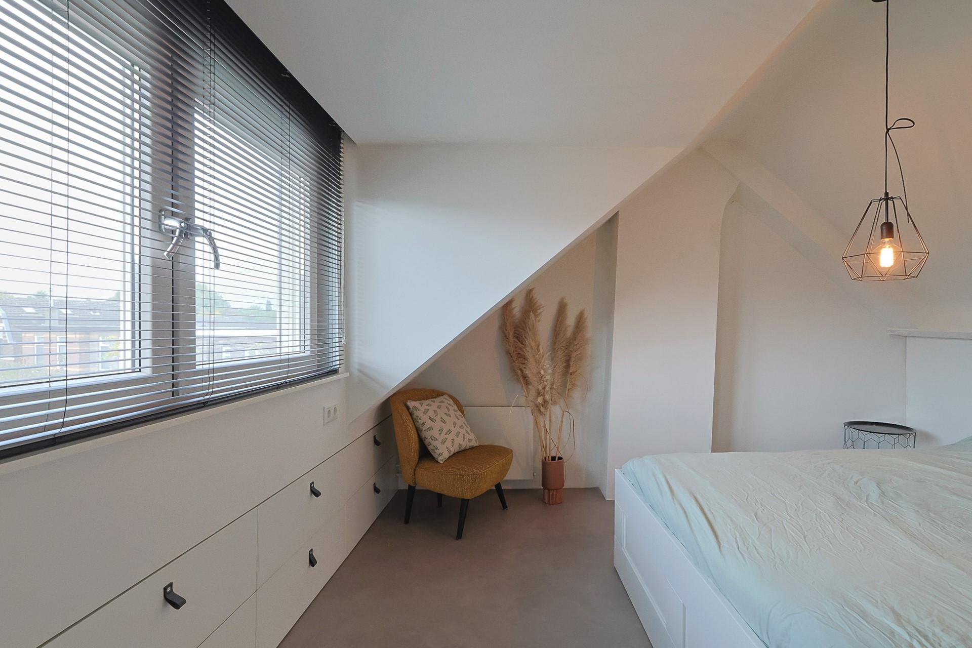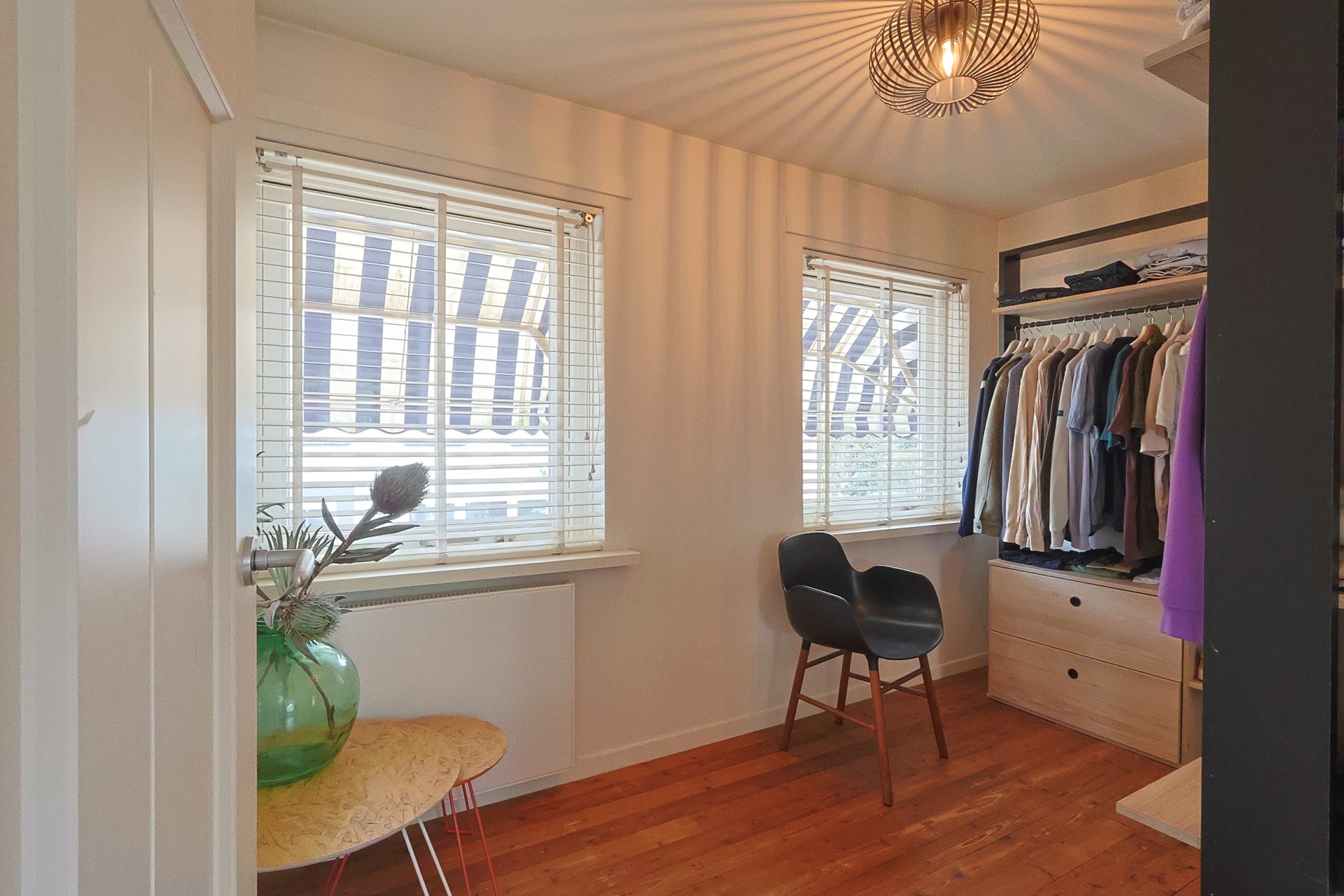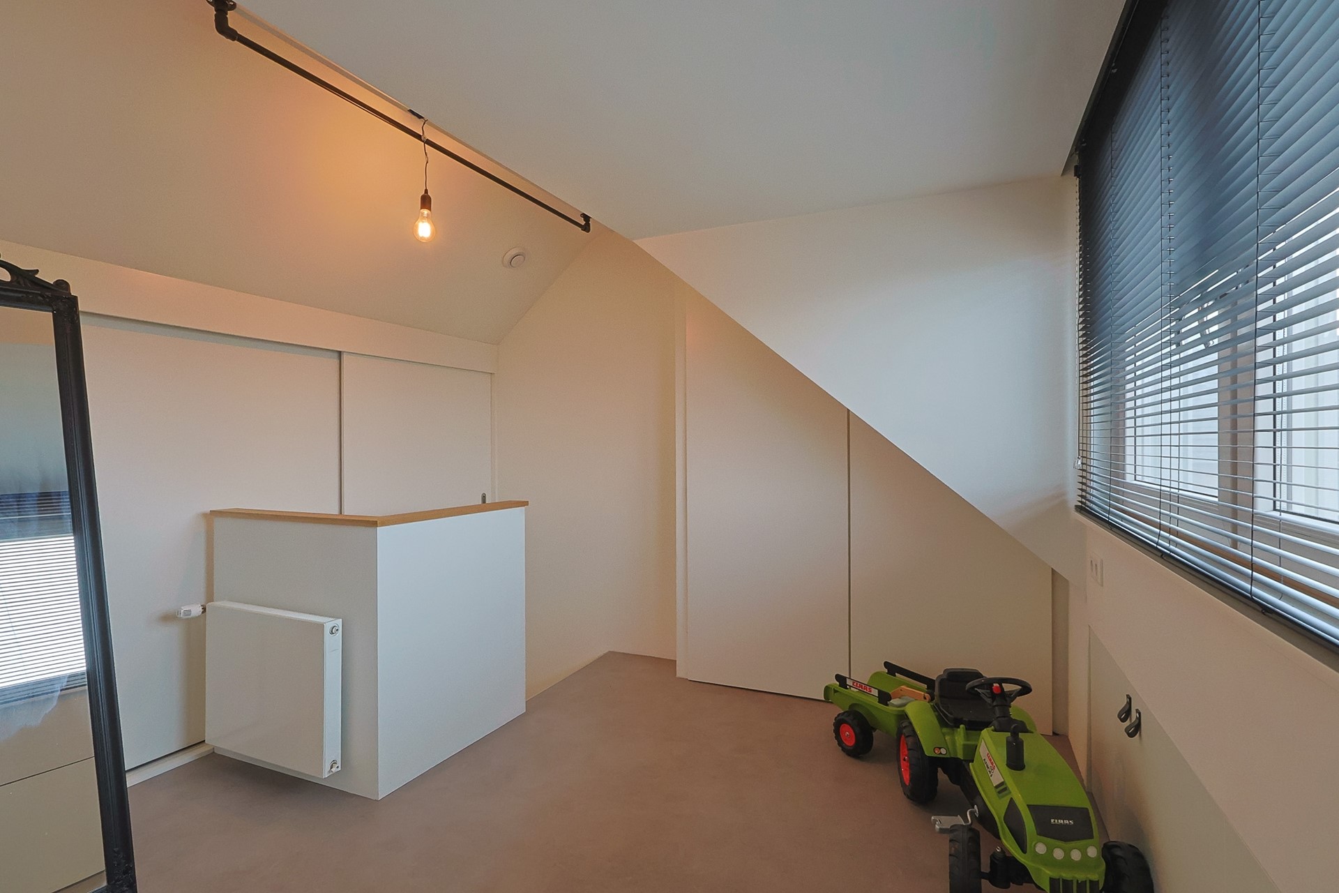 De zolderverdieping is in 2015 volledig geïsoleerd en verbouwd. Je vindt hier een ruime vierde slaapkamer met dakkapel en rolluiken, extra werkruimte én maatwerk kastruimte. De CV-installatie met de HR-combiketel - Nefit Toplineis is netjes weggewerkt in een aparte kast.
