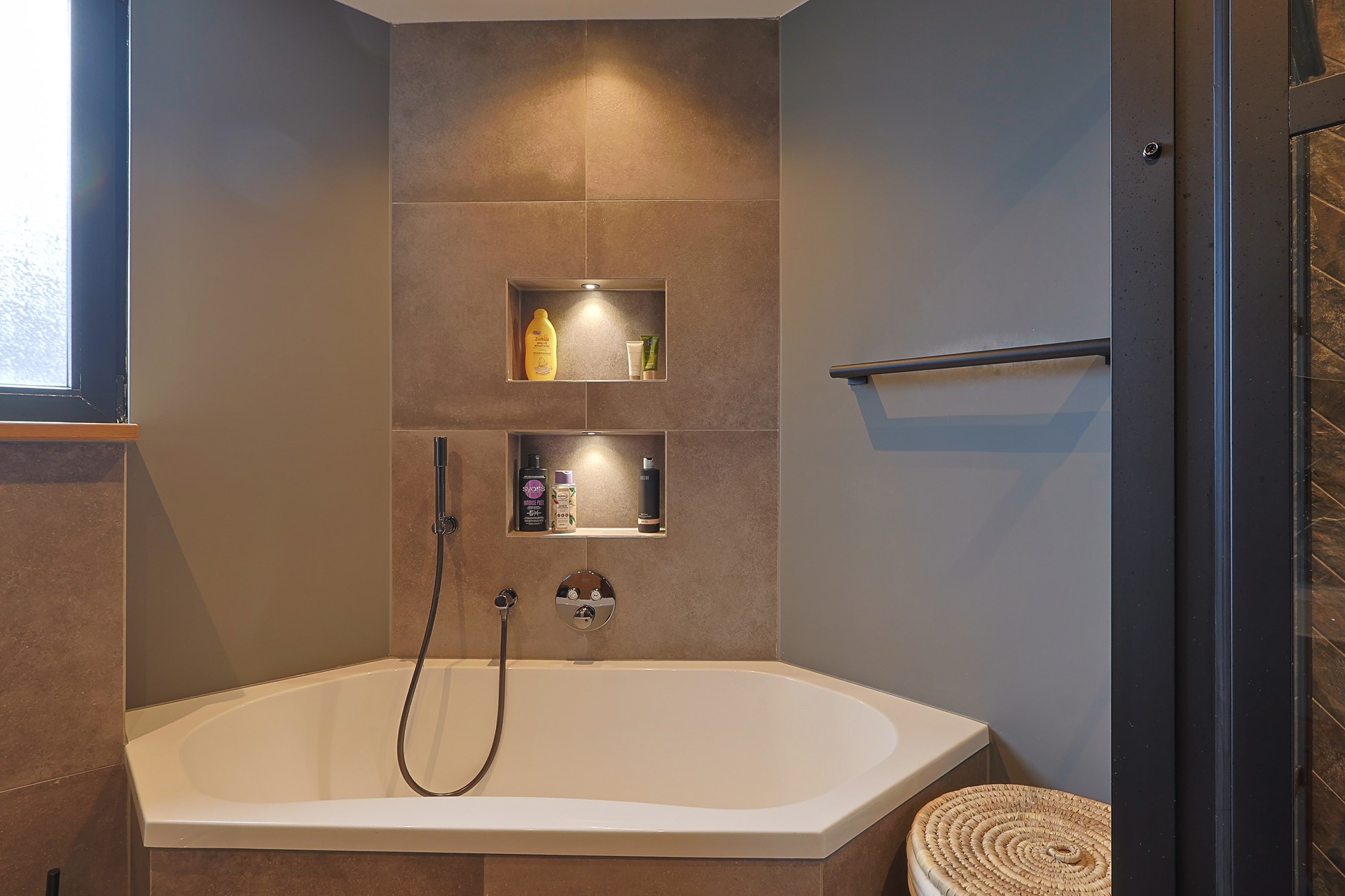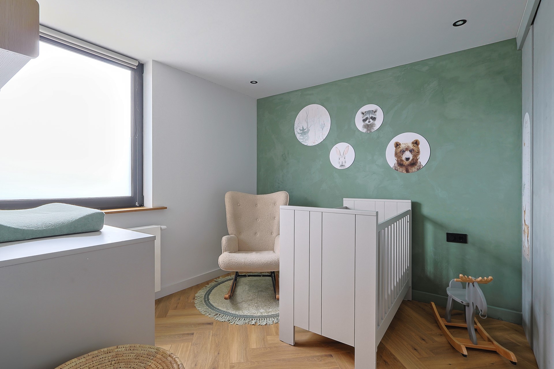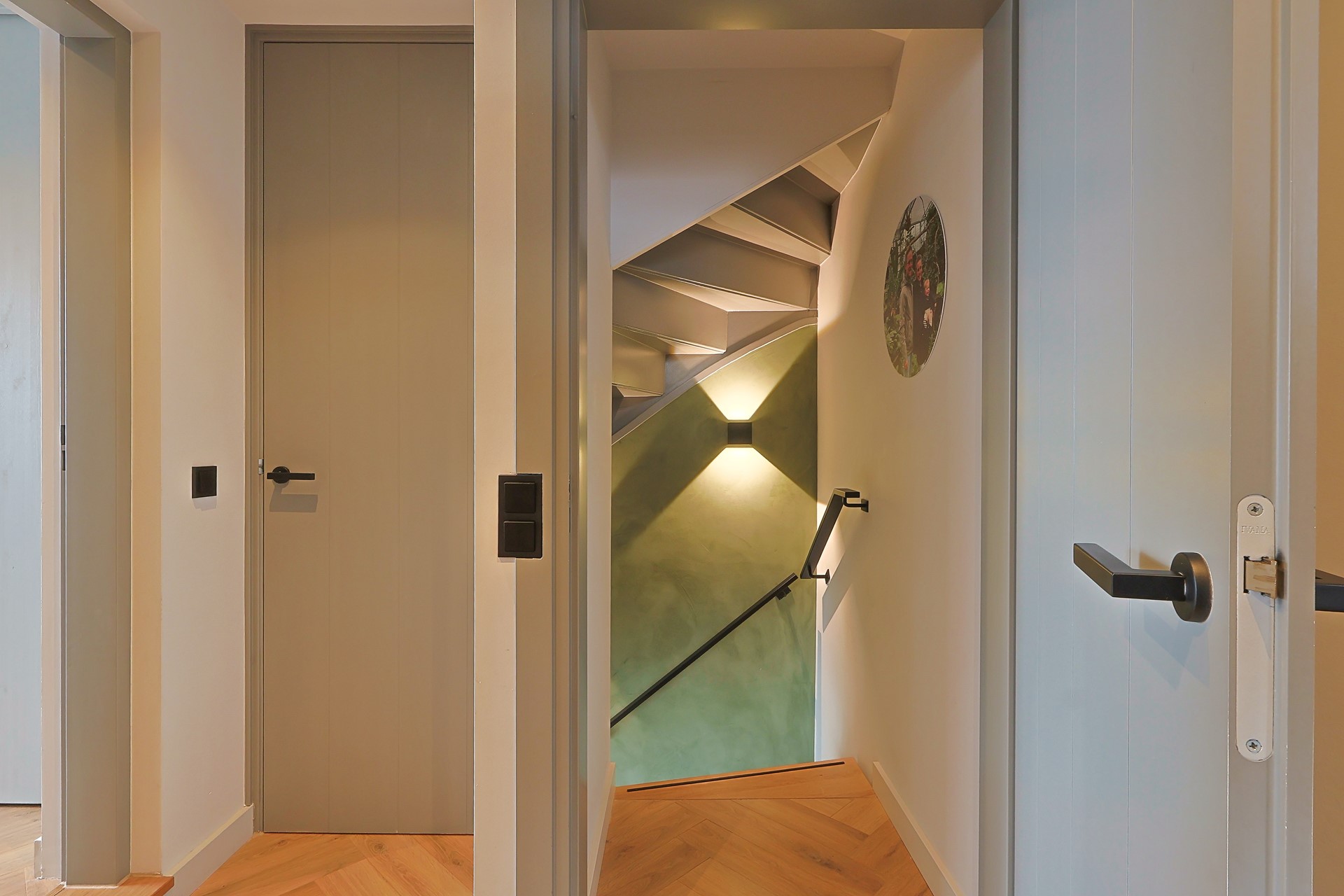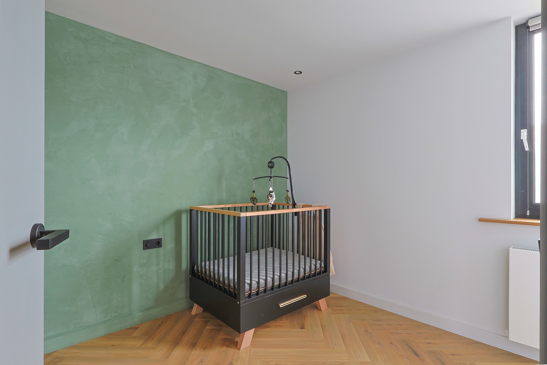 Overloop met toegang tot vier slaapkamers, waarvan één in gebruik als werk-/studeerkamer. Alle kamers zijn strak afgewerkt en voorzien van een laminaatvloer en vaste kasten. Moderne badkamer met ligbad, douchecabine, toilet, wastafelmeubel en elektrische vloerverwarming.