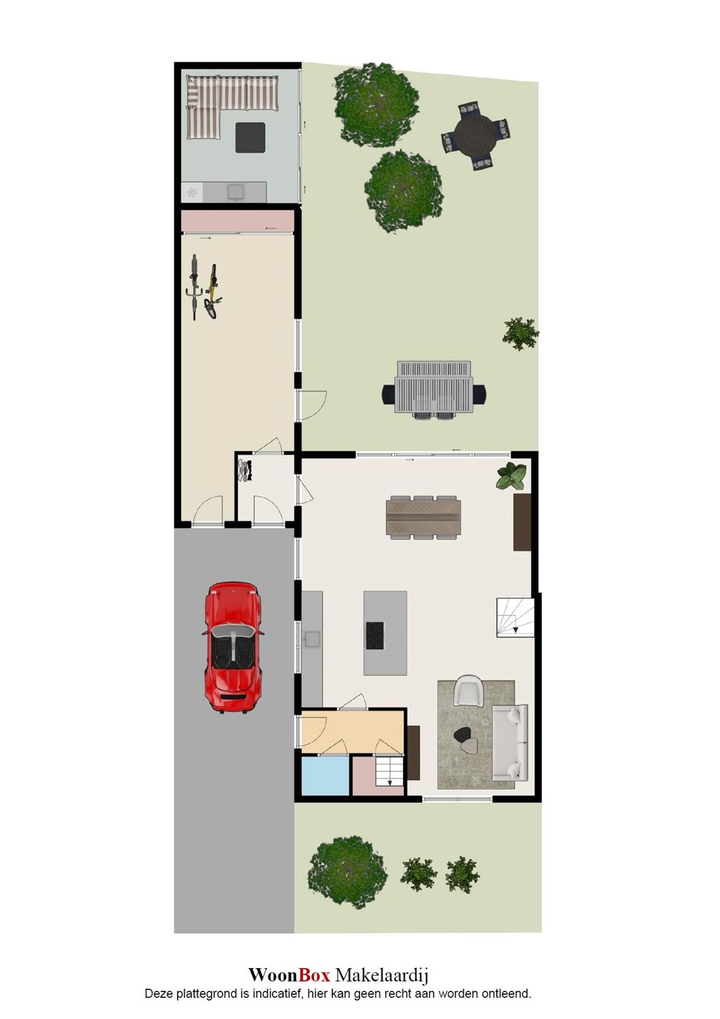 Via de brede schuifpui stap je zo het terras op van de achtertuin. De achtertuin is fraai aangelegd met olijfbomen, lichte bestrating en meerdere zitplekken, waardoor je je hier in Spanje waant. Achter de berging een tuinkamer met glazen schuifwand, buitenkeuken en loungehoek. Aan de voorzijde een rustige breed opgezette straat met groenstrook. Oprit en een strakke carport met lichtkoepel en de twee deuren in aanbouw als dubbele achterom.