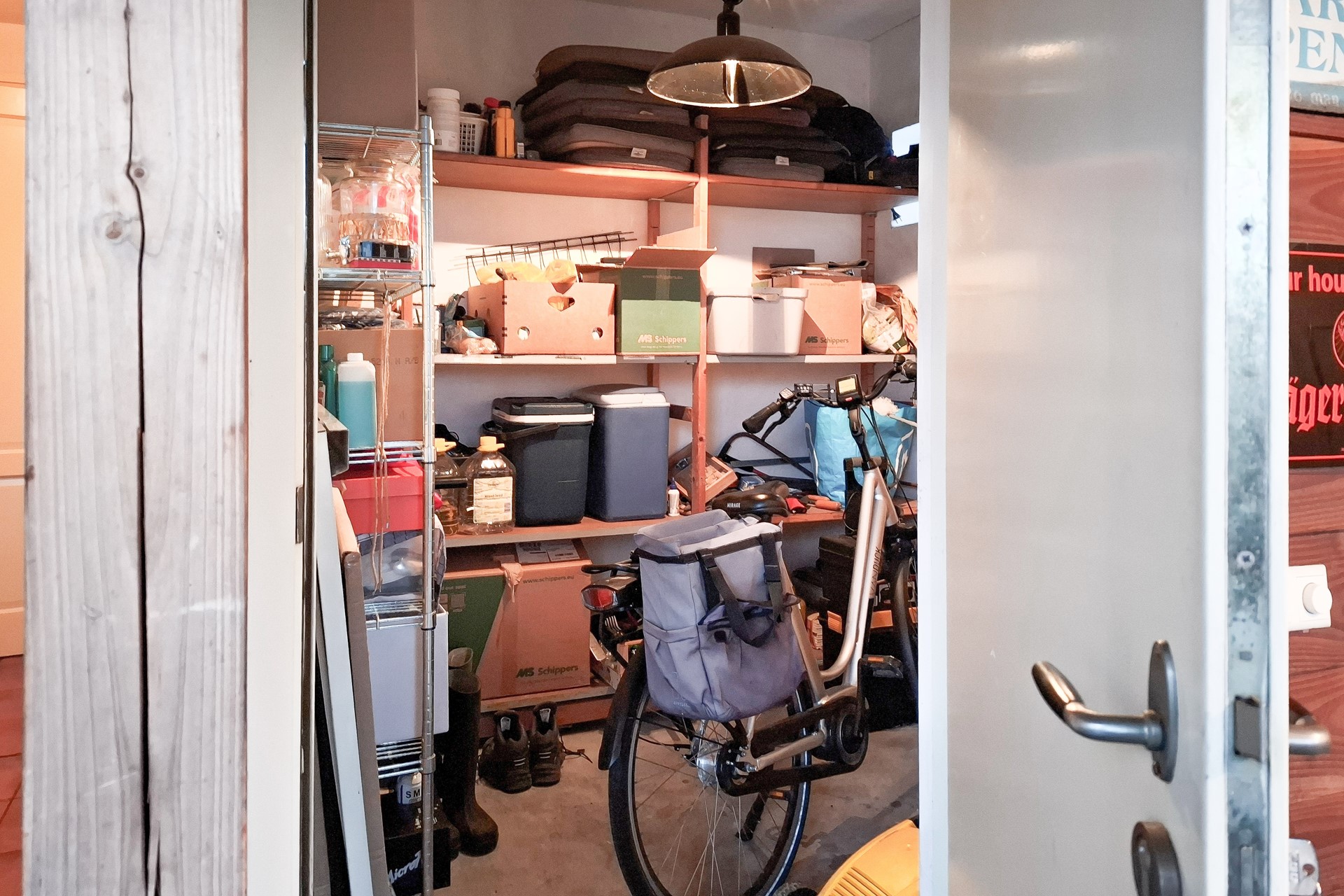 Via een vlizotrap op de overloop bereikbare bergzolder met steenharde verdiepingsvloer, klein dakraam, HR-combiketel, afzuiging en de omvormer van de zonnepanelen.